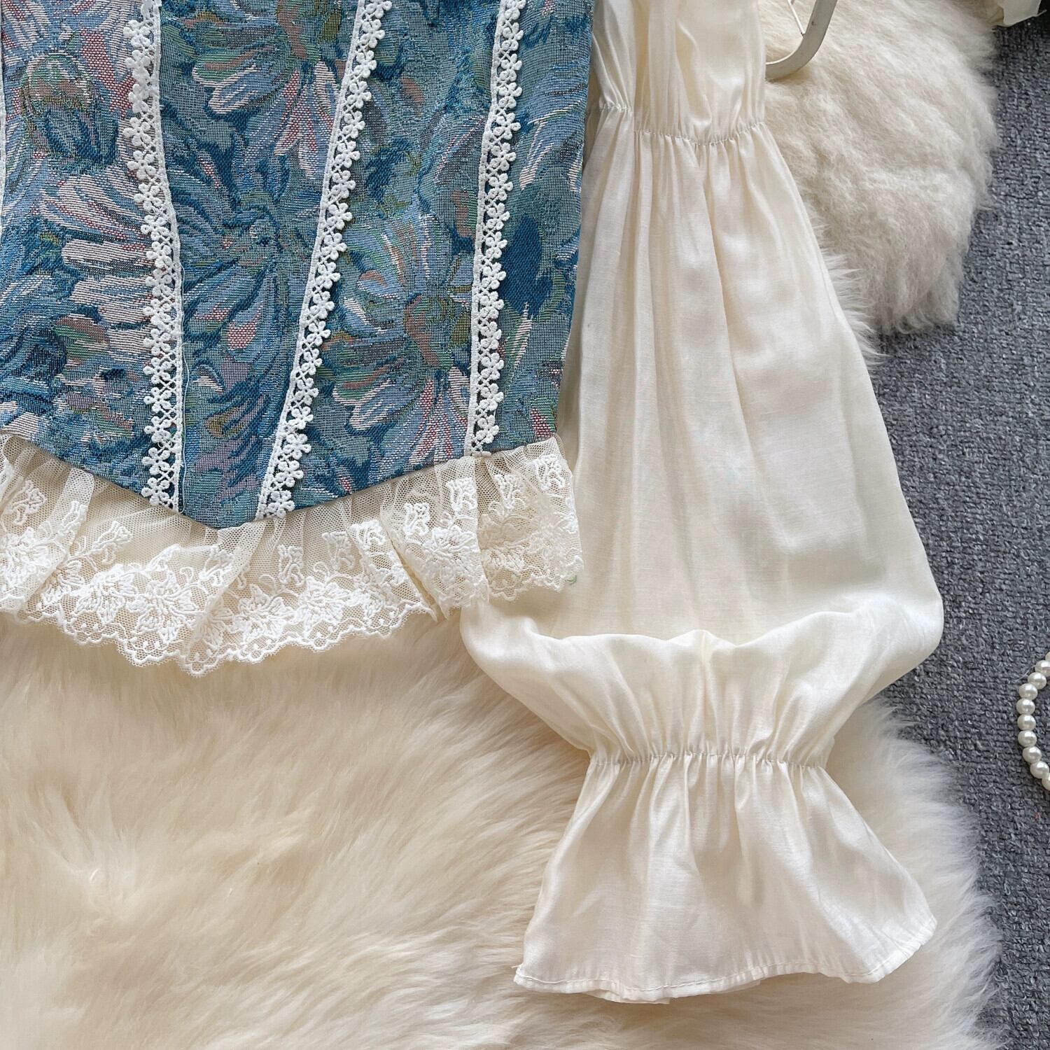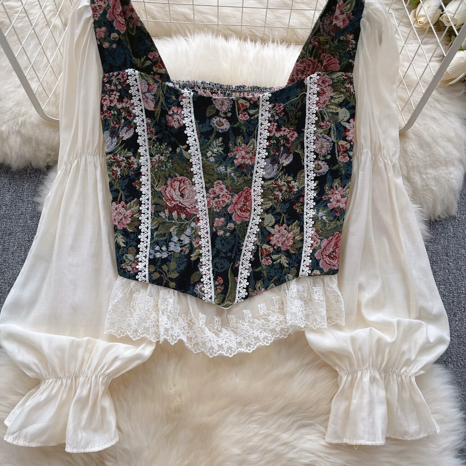 秋の服の女性 2023 新しい気質スクエアネックショートレースウエスト痩身パフスリーブトップ女性 オータム 秋物 スクウェア lyxaj67636308446