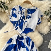 軽くて大人なスタイルのホリデープリントドレスレディースニッチハイエンド中空ウエスト露出深いVネックシフォンロングスカート lyxaj8258177669
