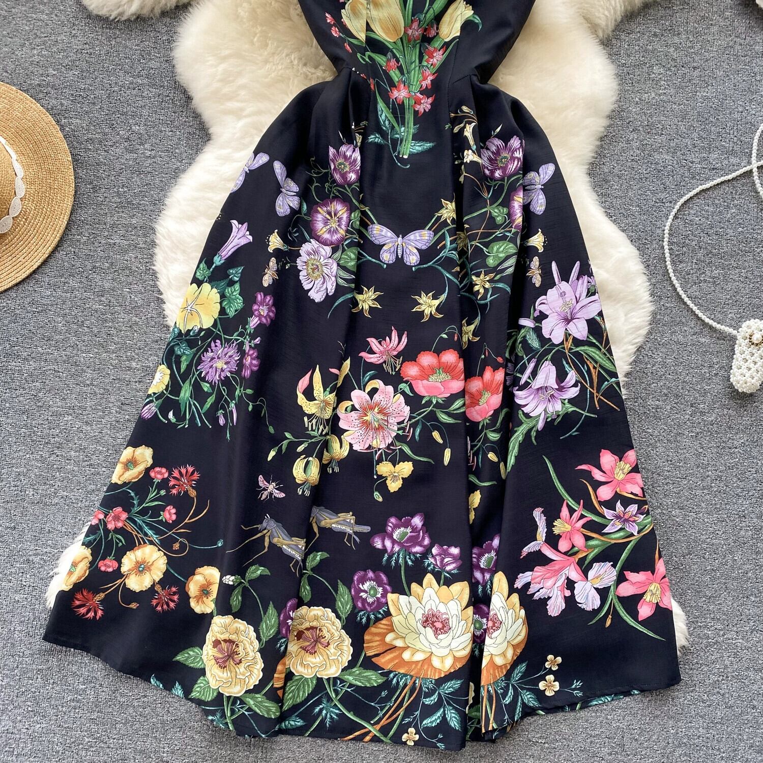 フレンチレトロエレガントなヘビーデューティーポジショニングプリントノースリーブドレス女性の夏のハイウエスト痩身気質aラインスカートと大きな裾 サマー 夏物 lyxaj47503070145