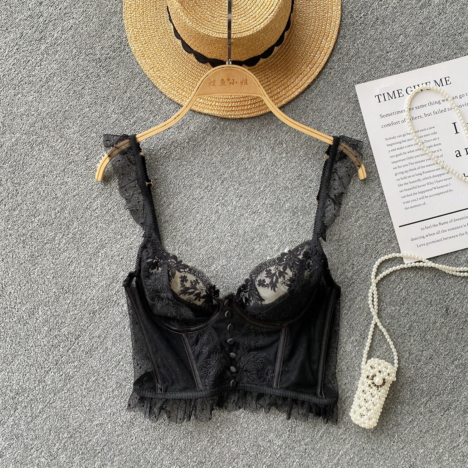 軽くて豪華なヨーロッパとアメリカのスタイルのサスペンダーチューブトップの女性、メッシュレースのショートデザイン、ニッチな気質、トレンディなボトミングトップ ヨーロピアン lyxaj40757307724