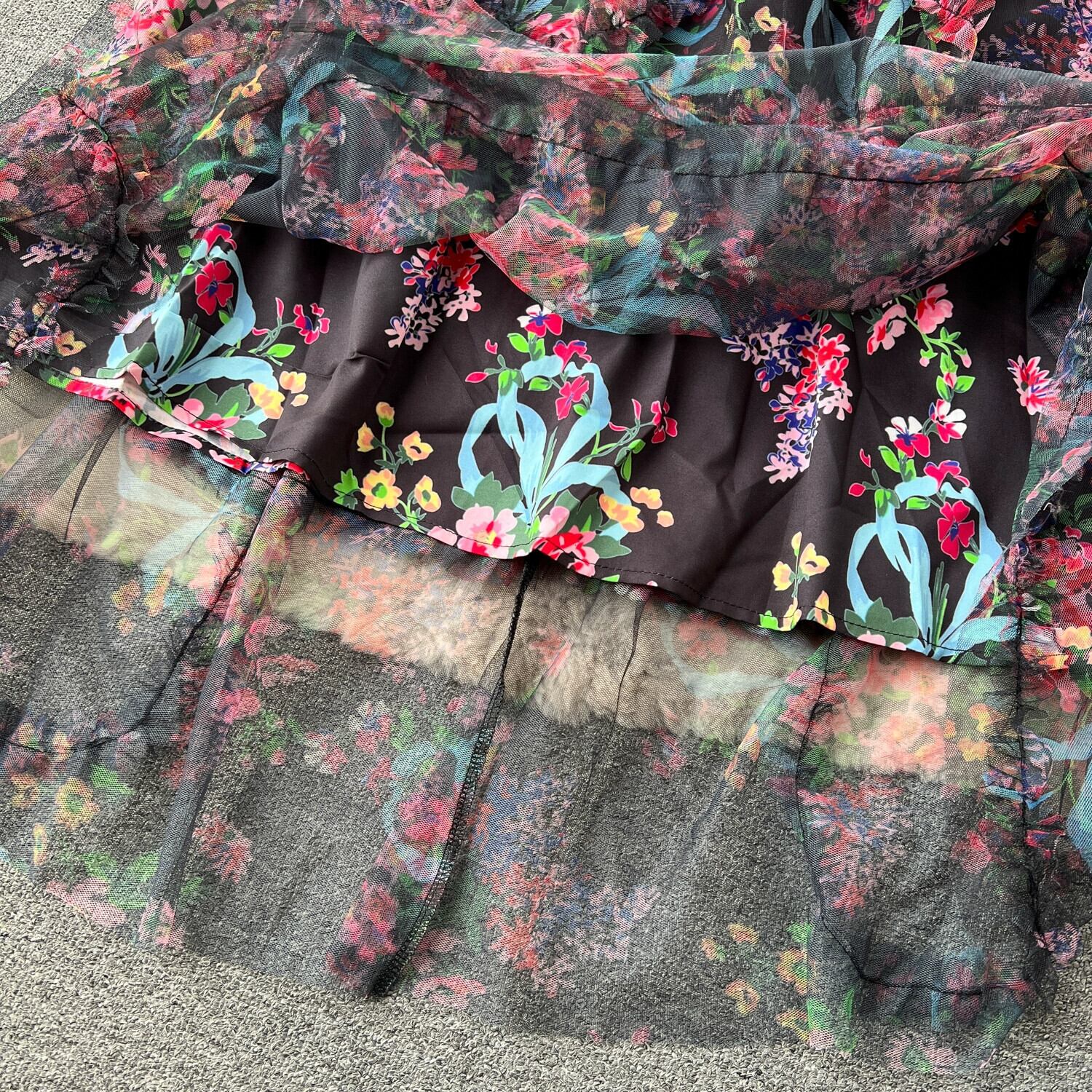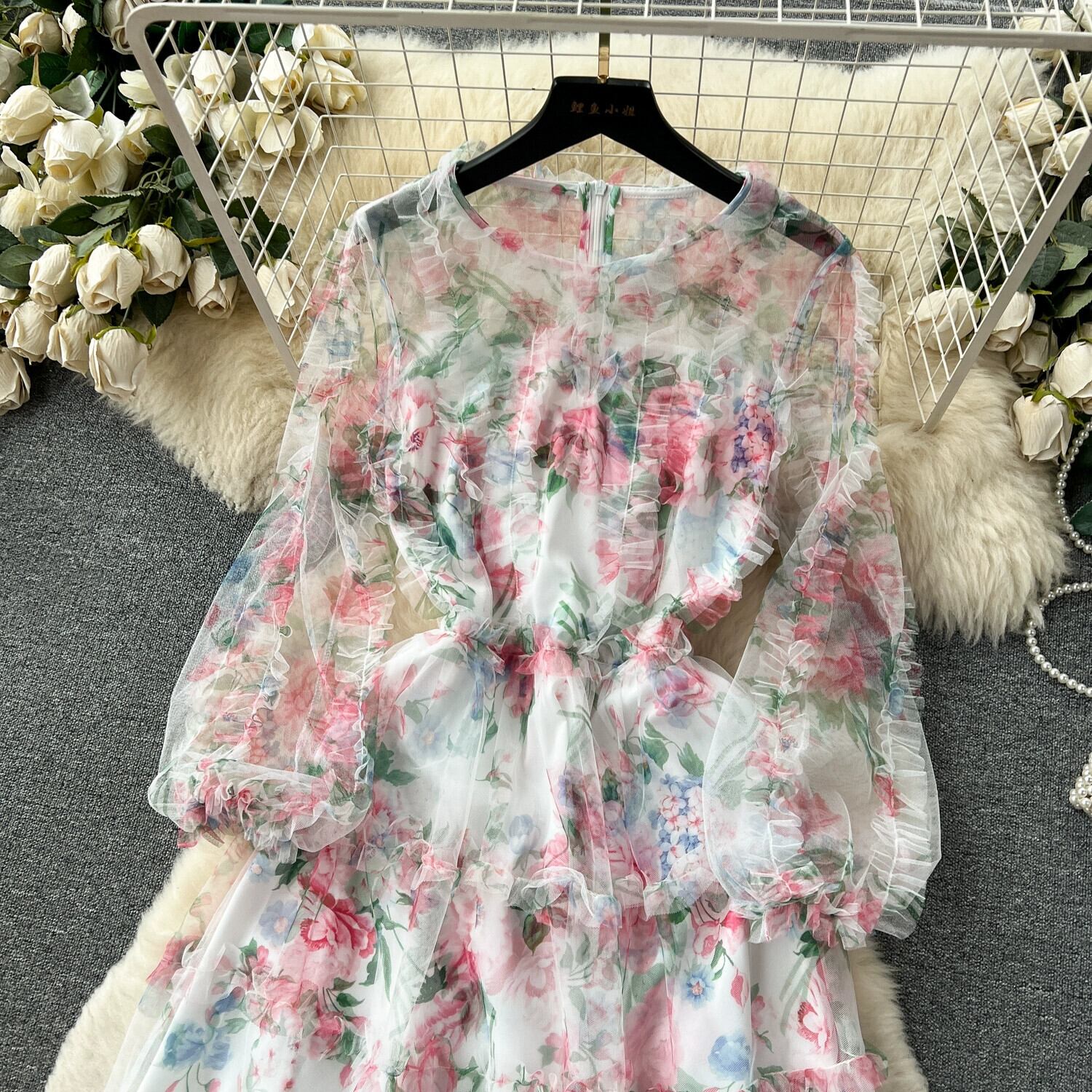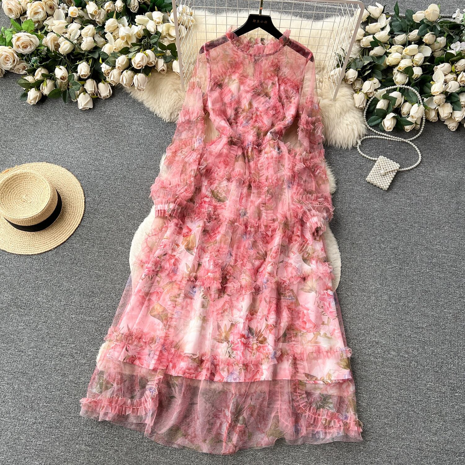 -秋のエレガントで大人っぽいスタイルのドレス女性、着痩せとスリム化、長い大きなスイングメッシュプリントの妖精のスカートを終了します。 ロング オータム 秋物 lyxaj88956472244