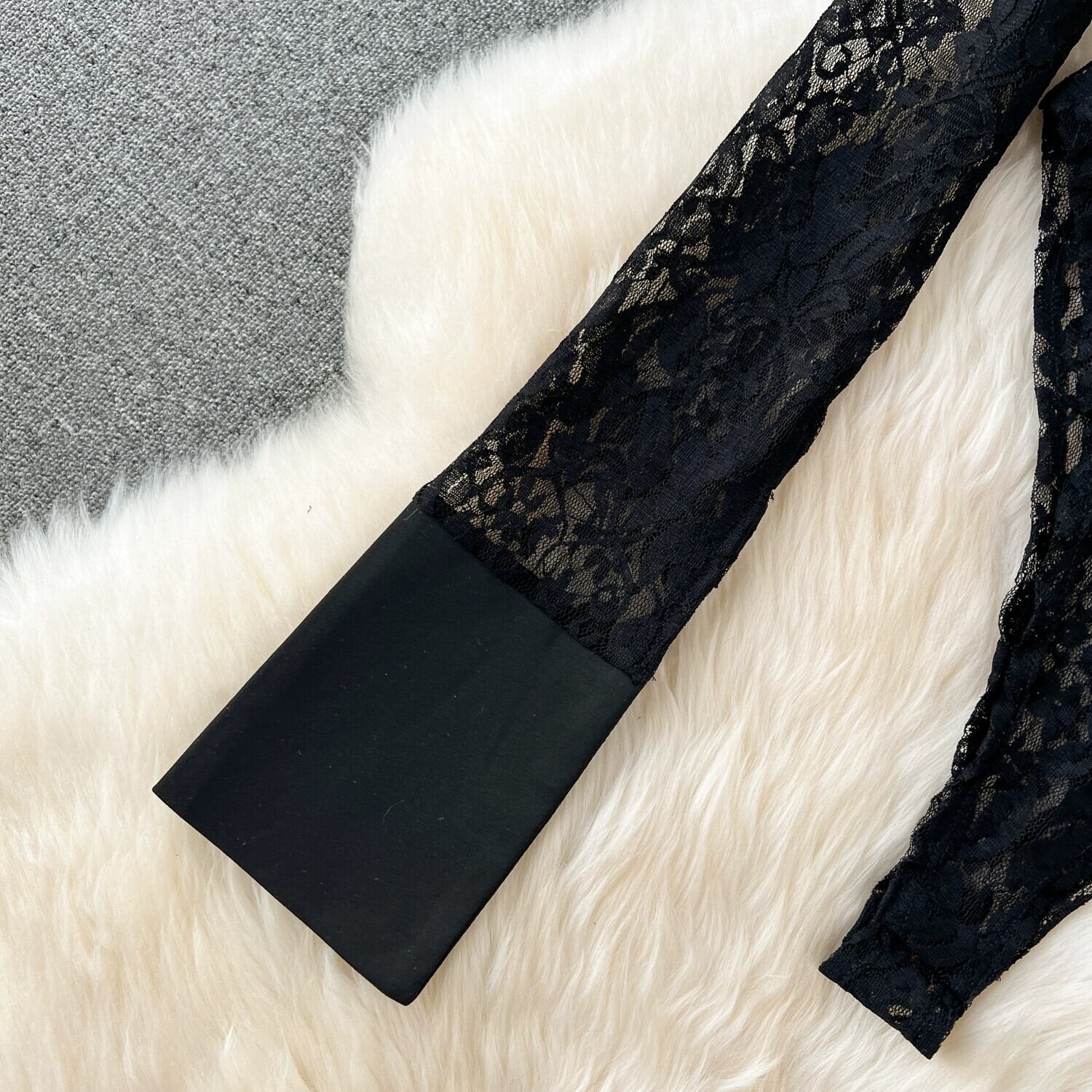 ヨーロッパとアメリカのイン衣装の女性、高級シースルー長袖レースジャンプスーツ、ハイウエスト、スリムフィット、わずかにフレアのパンツ 2 点セット ロング レッド ヨーロピアン lyxaj61620029457