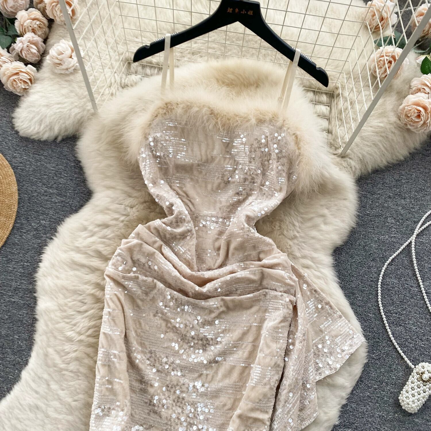 -エンドドレス小人、ハイエンドライトラグジュアリーニッチファーリーチューブトッププリーツスリムスパンコールドレスレディース lyxaj22361491086