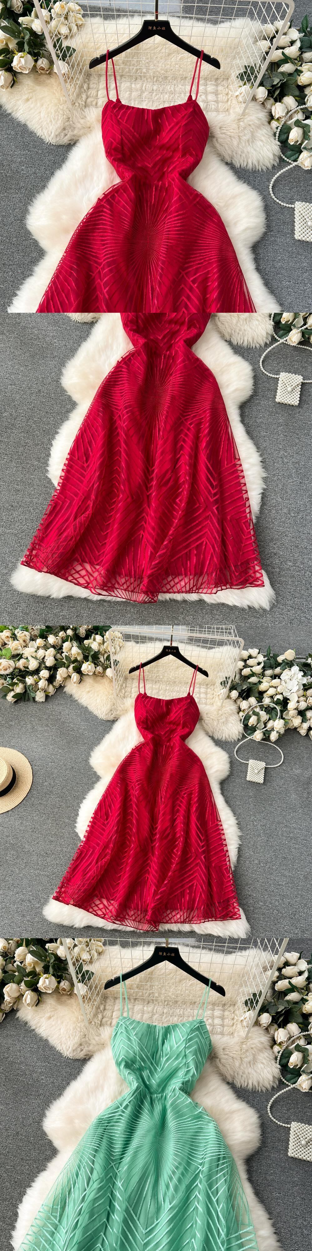 赤いドレス、ハイエンド、エレガント、スクエアネック、スリム、ミドルレングス、軽くて豪華な刺繍入りメッシュサスペンダースカート、イブニング レッド スクウェア lyxaj38696110520