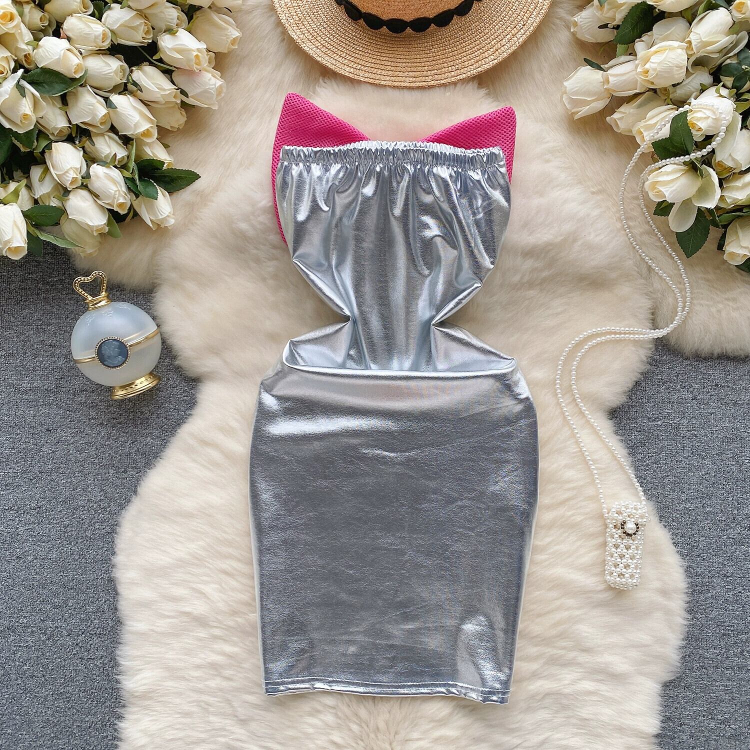 -エンドスモールドレス社交家、ハイエンドデザイン、ボウチューブトップドレス、セクシーなレザースカート、ドレスレディース リボン lyxaj40712408772