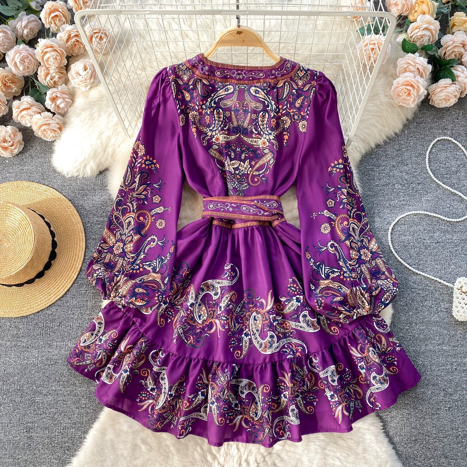 2024 早春の新スタイル宮殿スタイルプリントミニドレスレディースハイエンドレトロワンピースフリルドレス女性 レース スプリング 春物 lyxaj72568648472