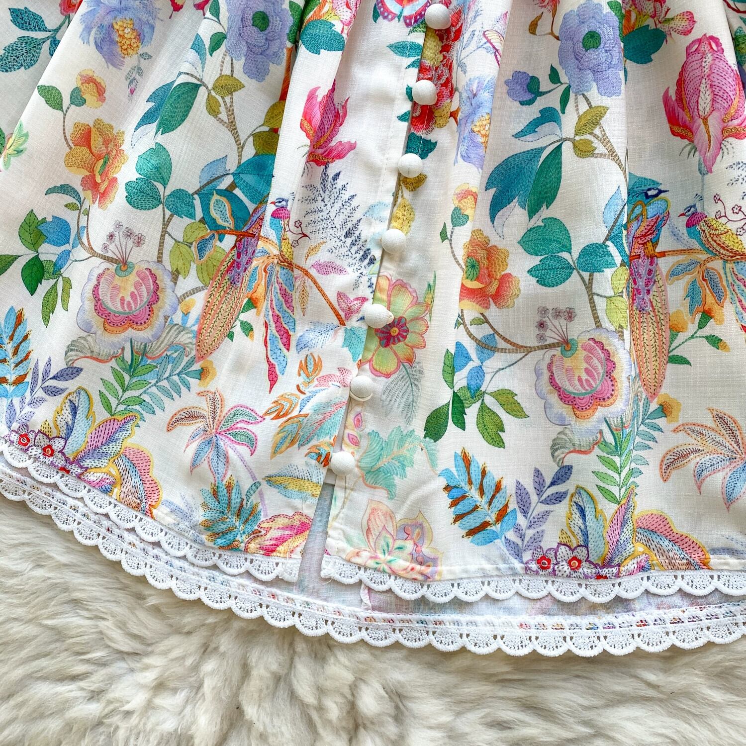 フレンチレトロな気質ドレス春の女性の甘いレース V ネックボタン付きスリムショートプリントドレス 大人ガーリー スウィート キュート カジュアル スプリング 春物 Vネック lyxaj80794030844