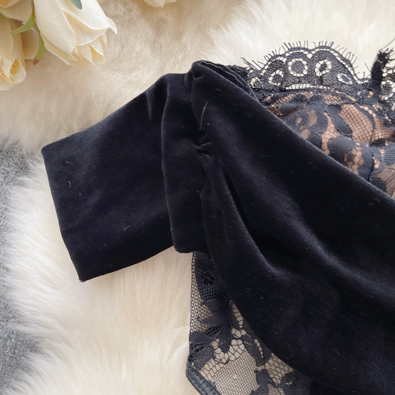 ドーパミン純粋な欲望ホットガールスタイルチューブトップ女性のメッシュスプライシングショートベルベットニッチ気質トップ ピュア lyxaj64303968359