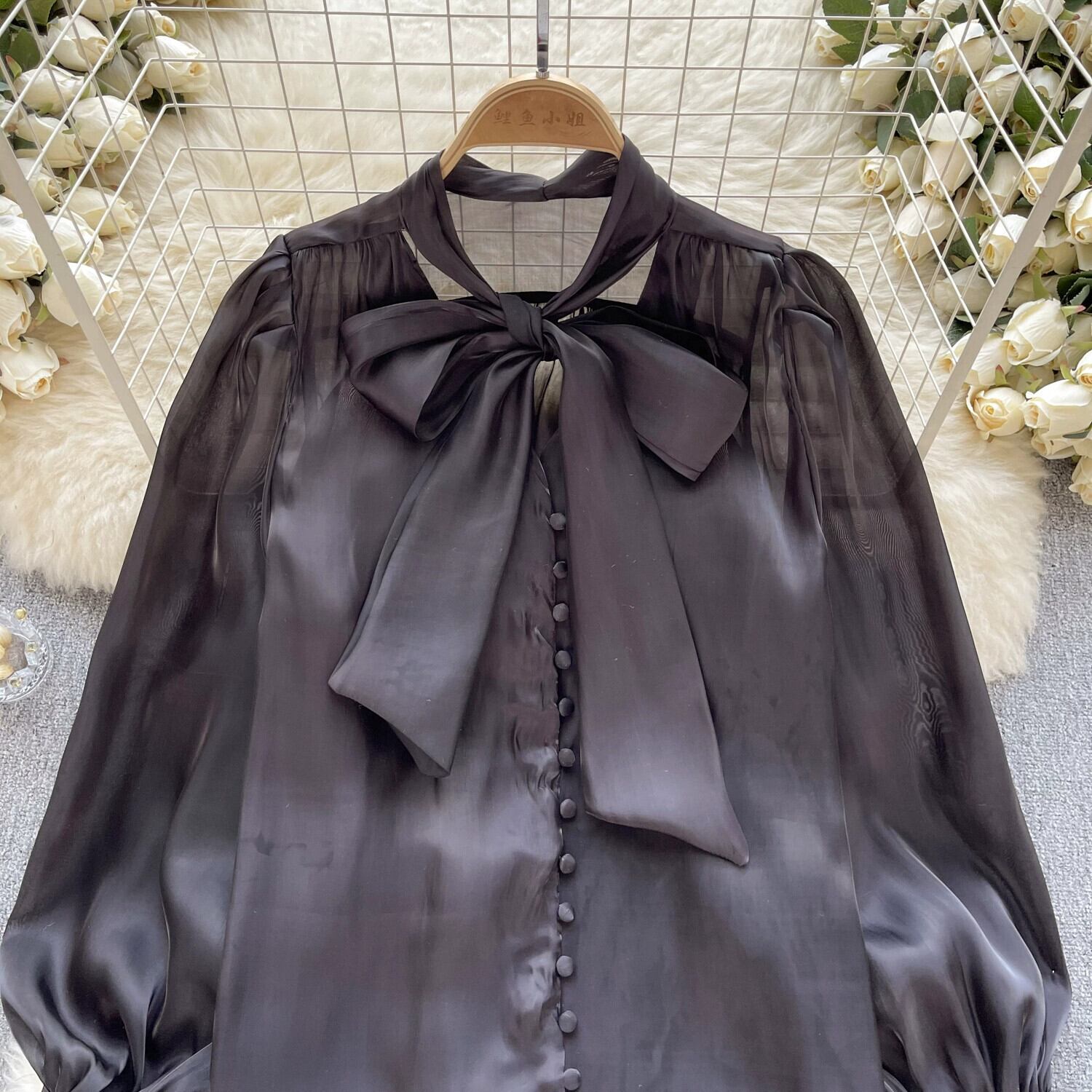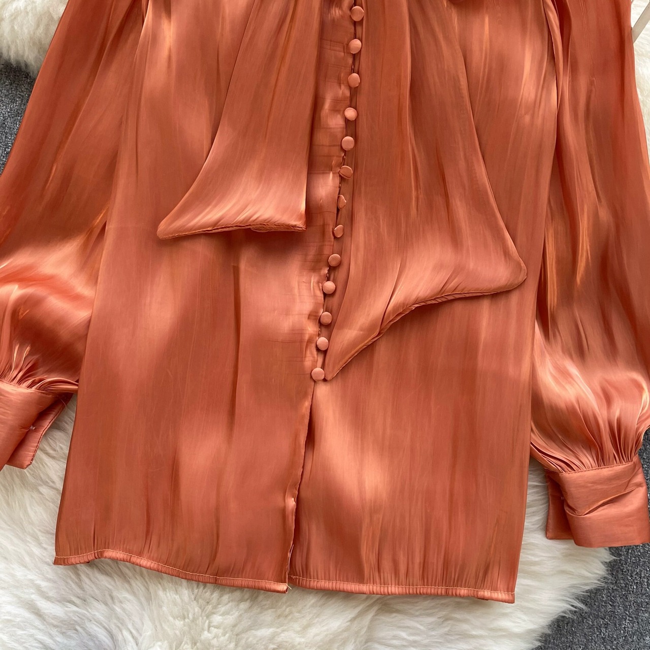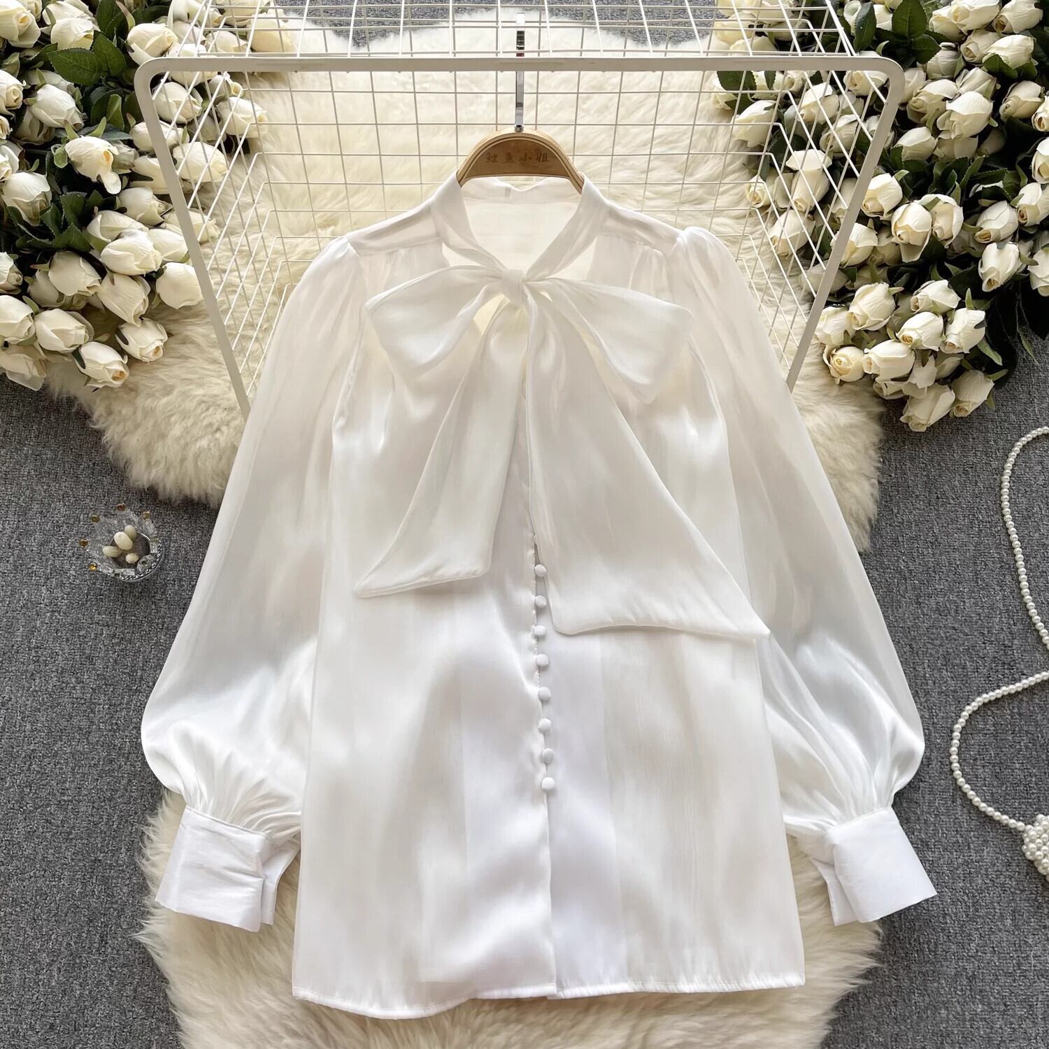 セレブのハイエンドシャツの女性のニッチライト高級気質多用途フレンチライト成熟したスタイルのエレガントなリボン流れるトップ lyxaj95209627876