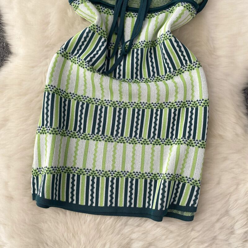 セクシーなホットガールショートスカート夏薄い純粋な欲望スタイルスリムフィットヒップカバーフレンチホルターネックバックレスニットドレス女性 サマー 夏物 ピュア lyxaj77006098465