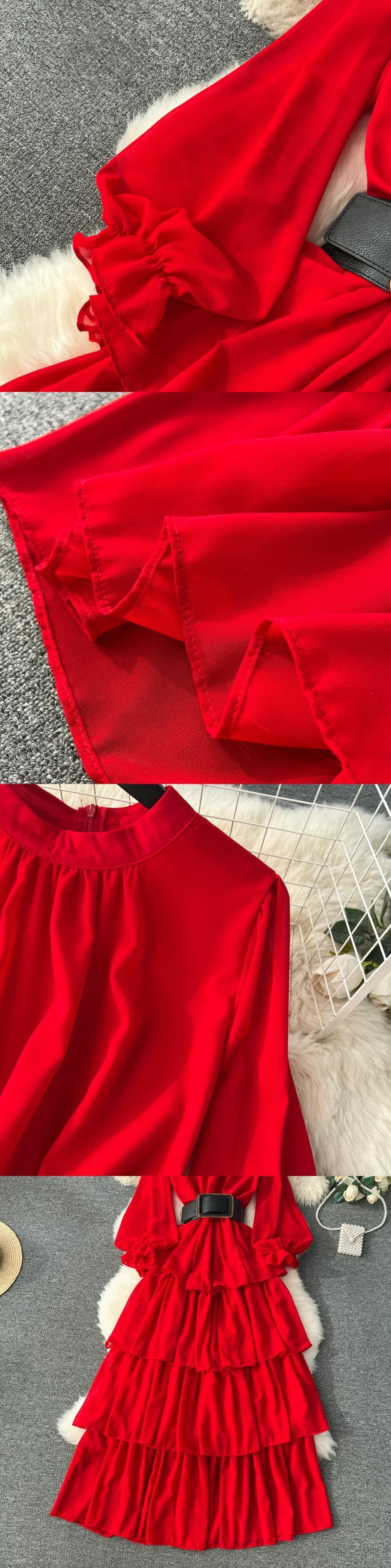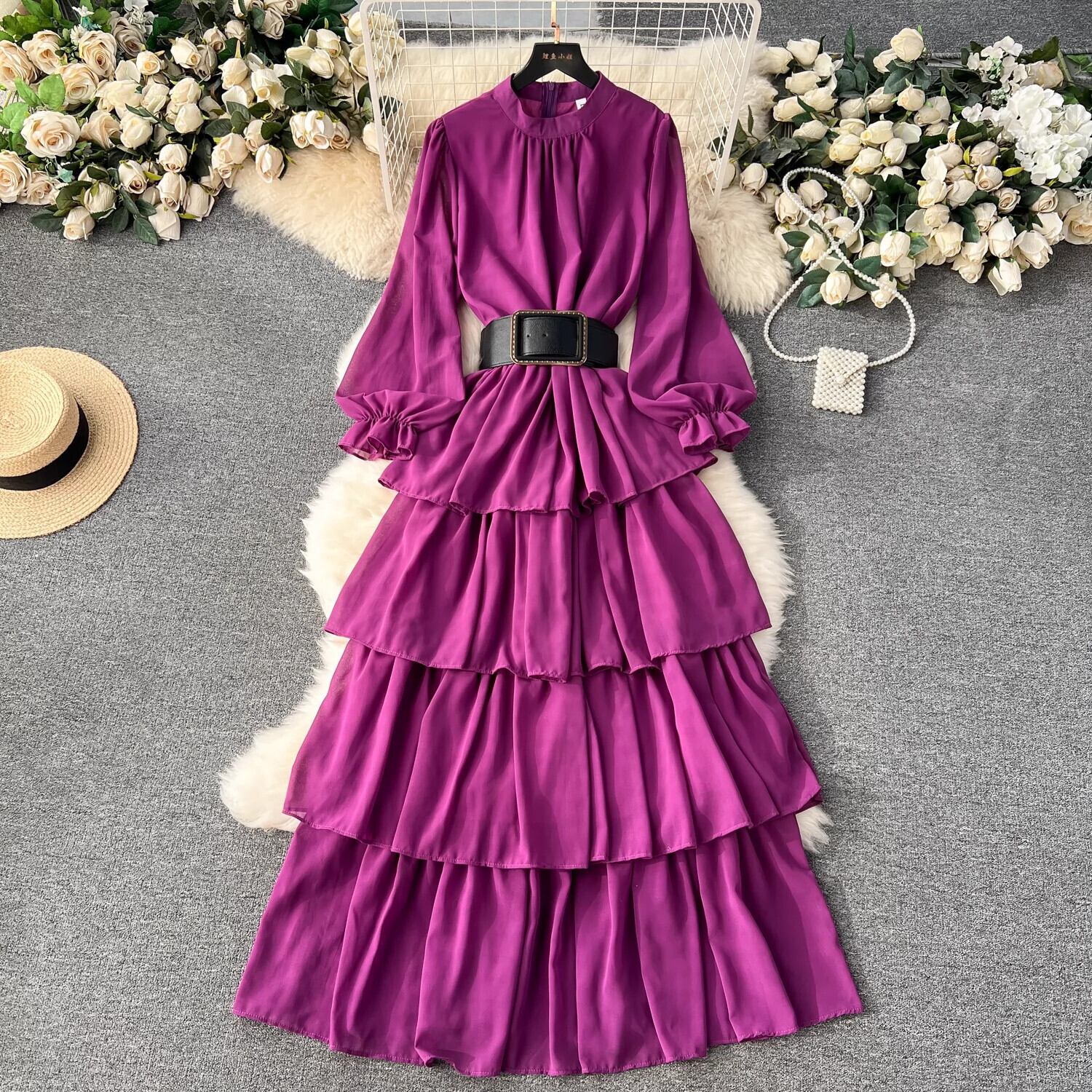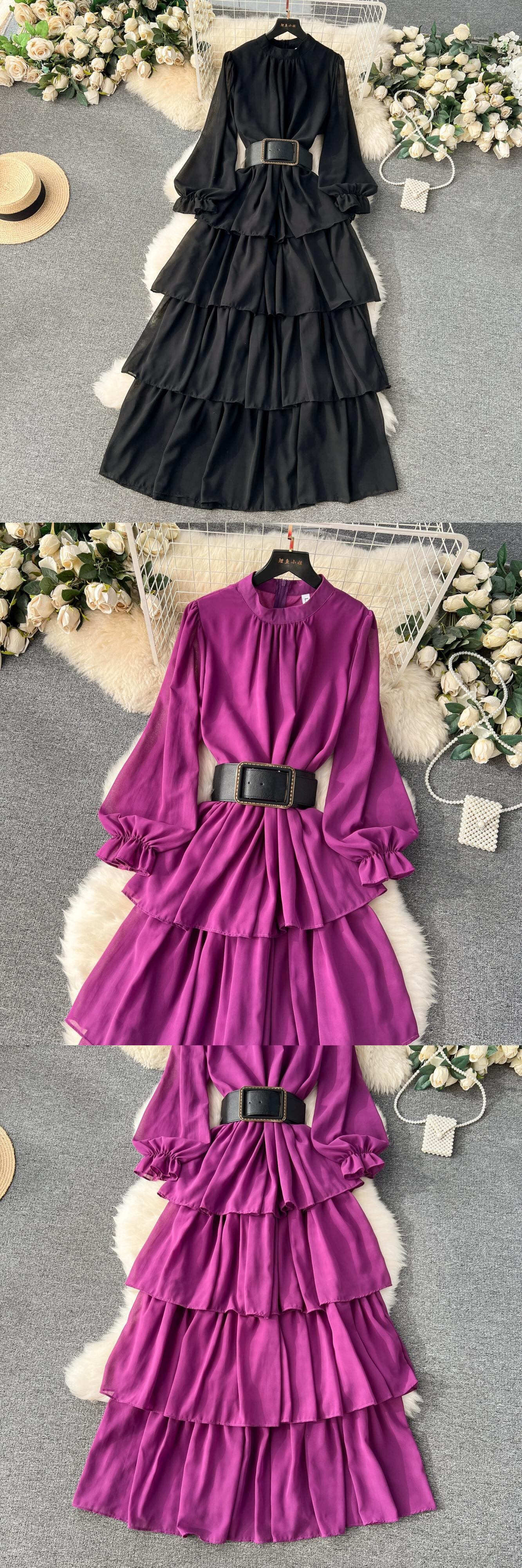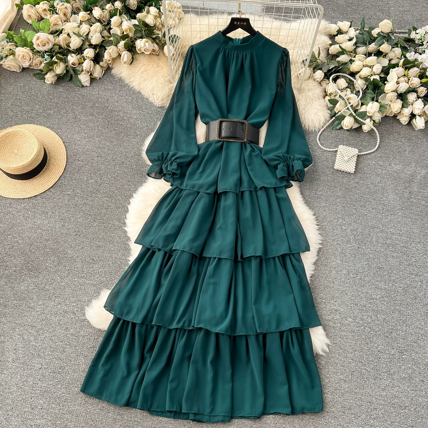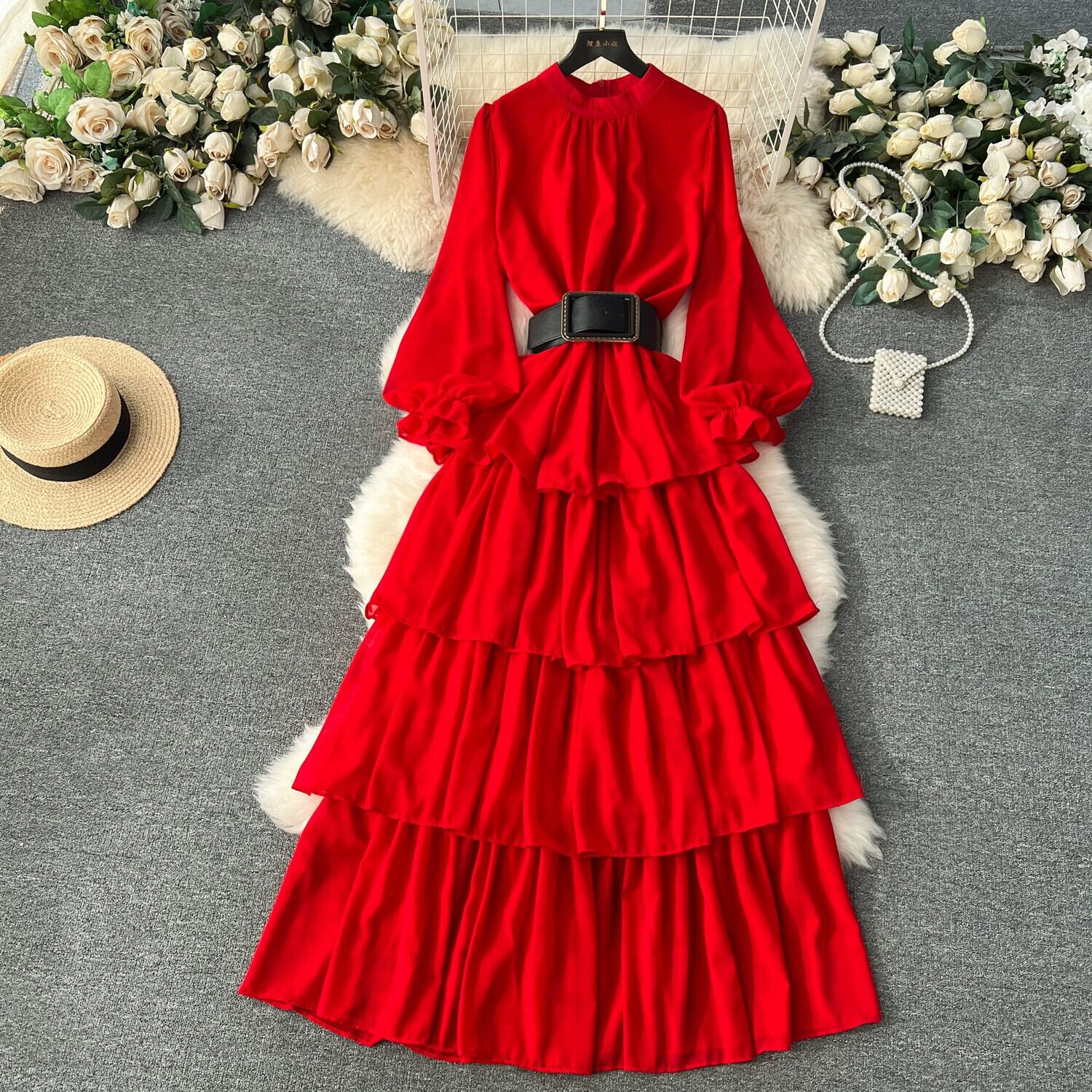 ヨーロッパとアメリカのドレス春の女性のハイエンドの軽い高級フリルロングスカートシフォンパフスリーブニッチケーキスカート スプリング 春物 ヨーロピアン lyxaj79555118970
