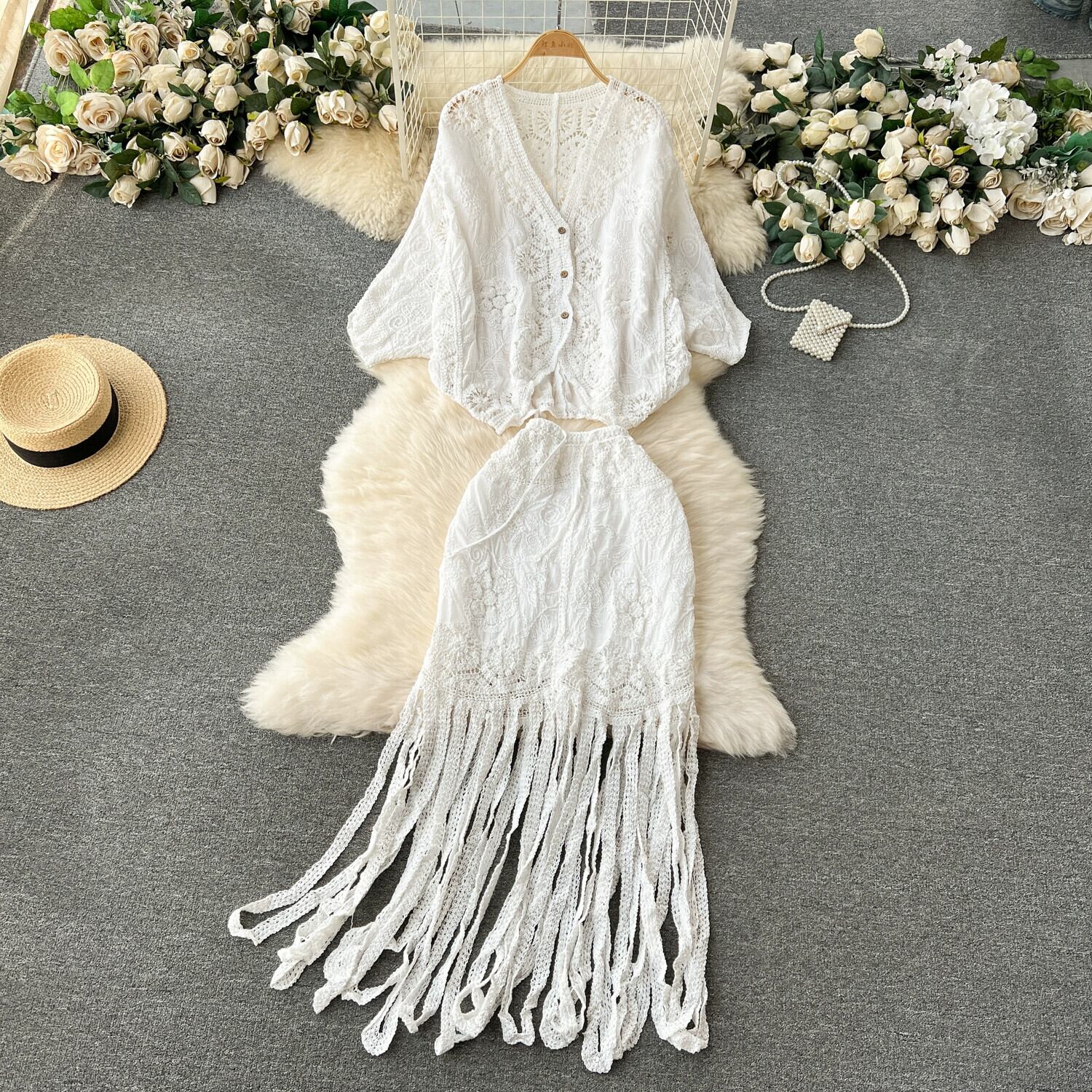 ボヘミアンレトロな休暇スタイルのスーツ、重厚な刺繍カーディガントップ、多用途なデザイン、テルスカート lyxaj88067094994