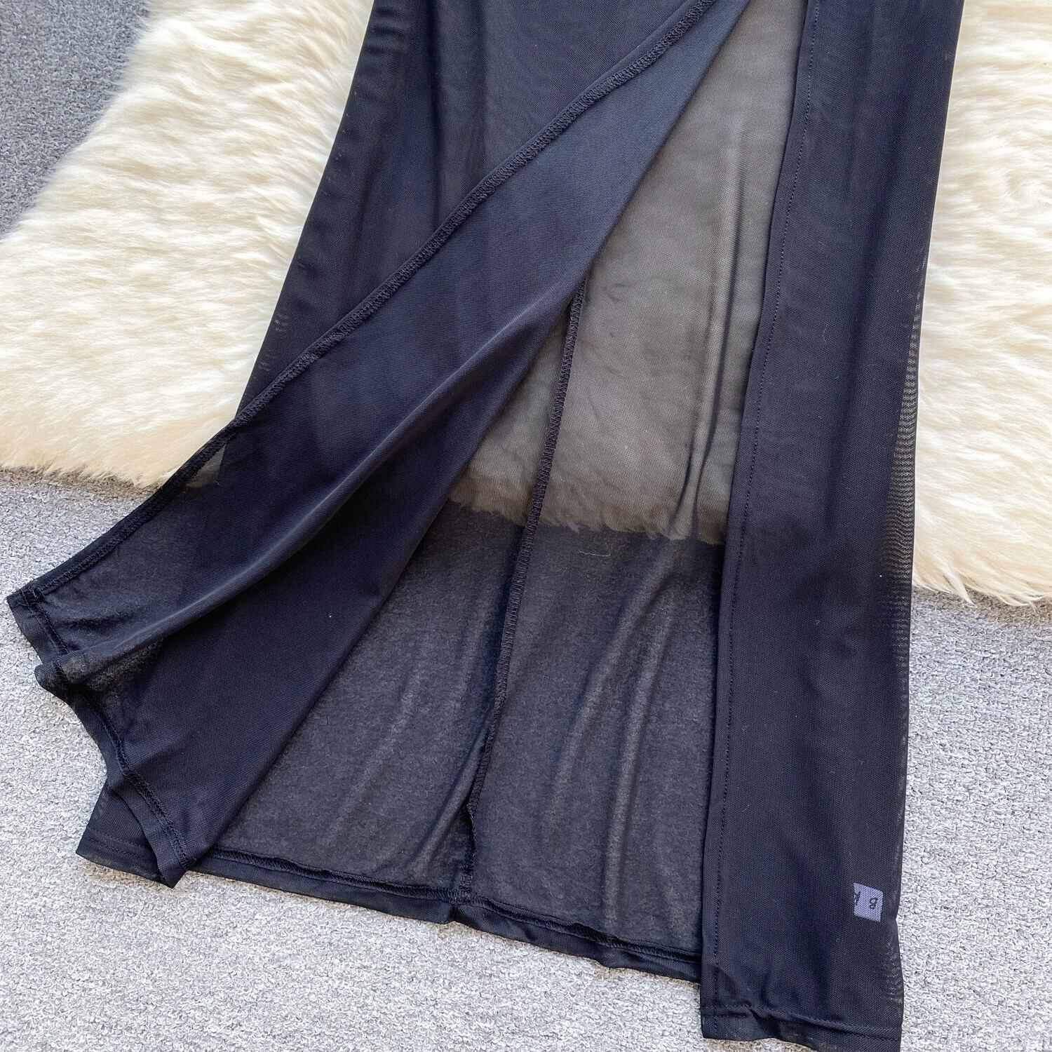 立体的なフラワーデザインのニッチレディスタイルバケーションスカート、スリムなロングチューブトップドレス、エレガントな気質のメッシュドレス lyxaj37068284145