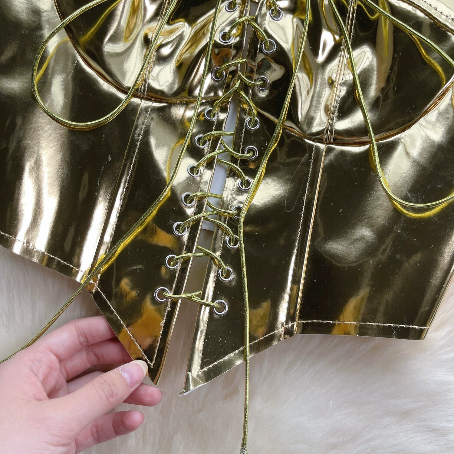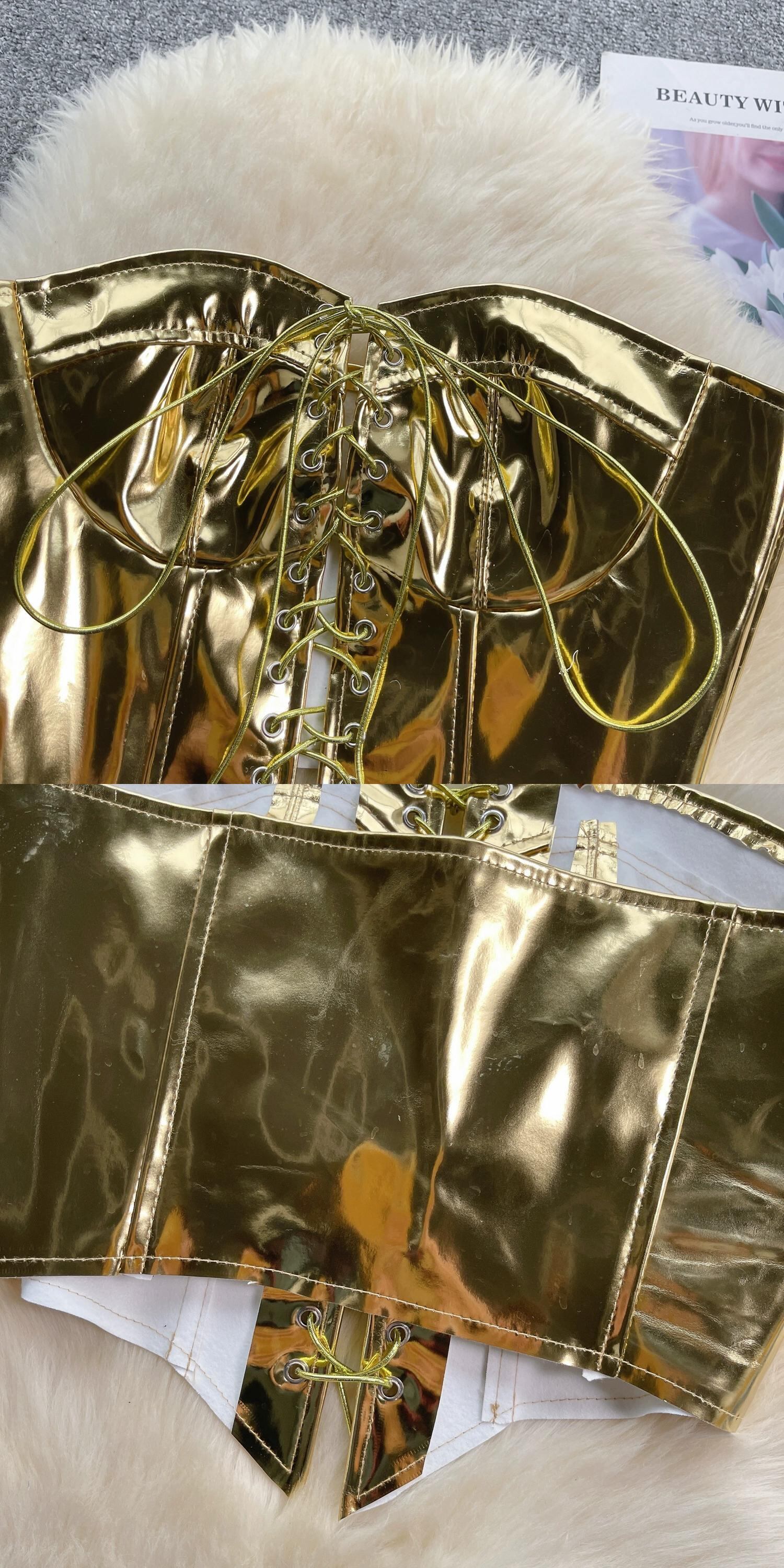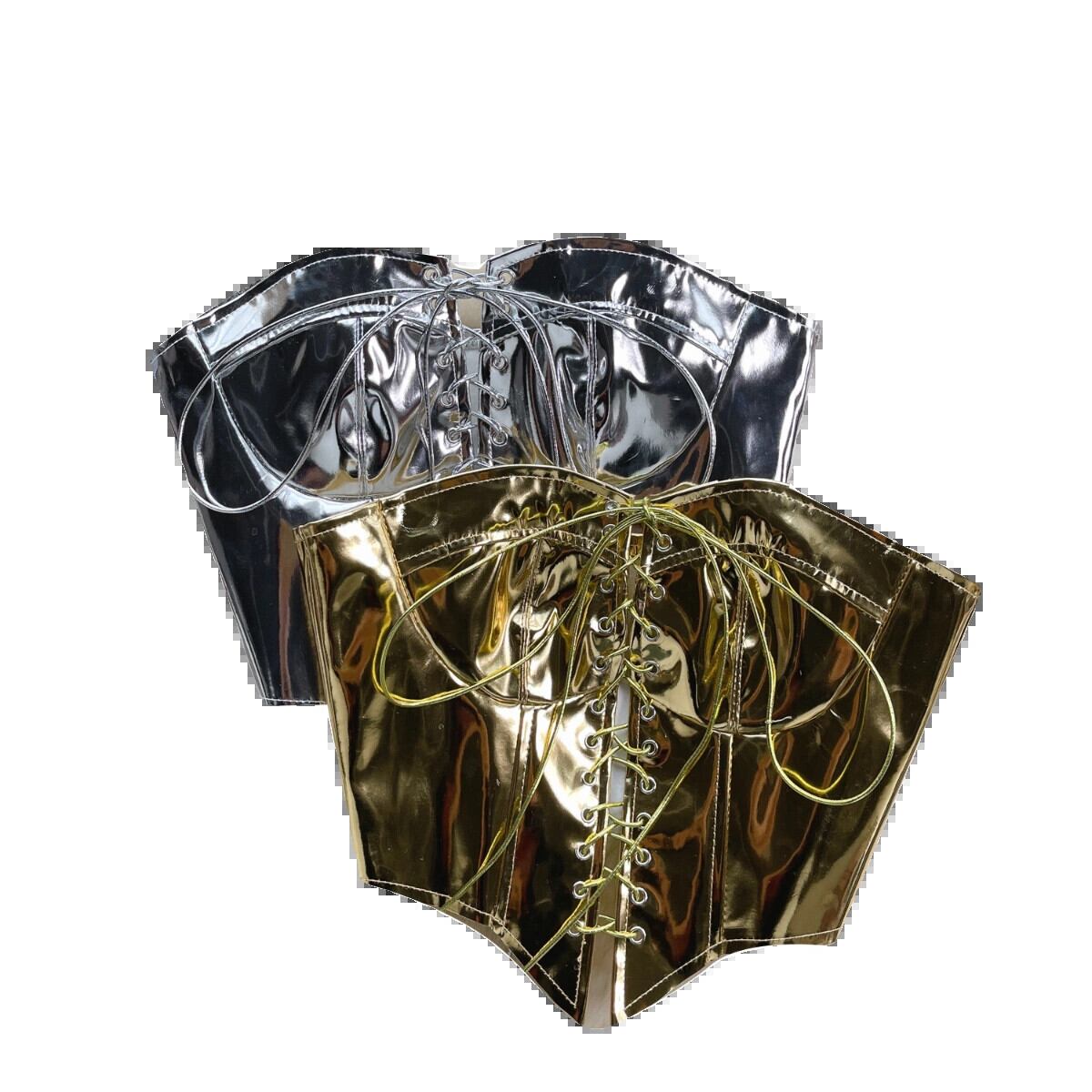 ヨーロッパとアメリカのスタイルのメタリックな光沢のある胸を包み込むデザイン、ストラップ付き、スリムフィットの短いへそ出しトップとチューブトップボトミングシャツ ショート ヨーロピアン lyxaj8572659289