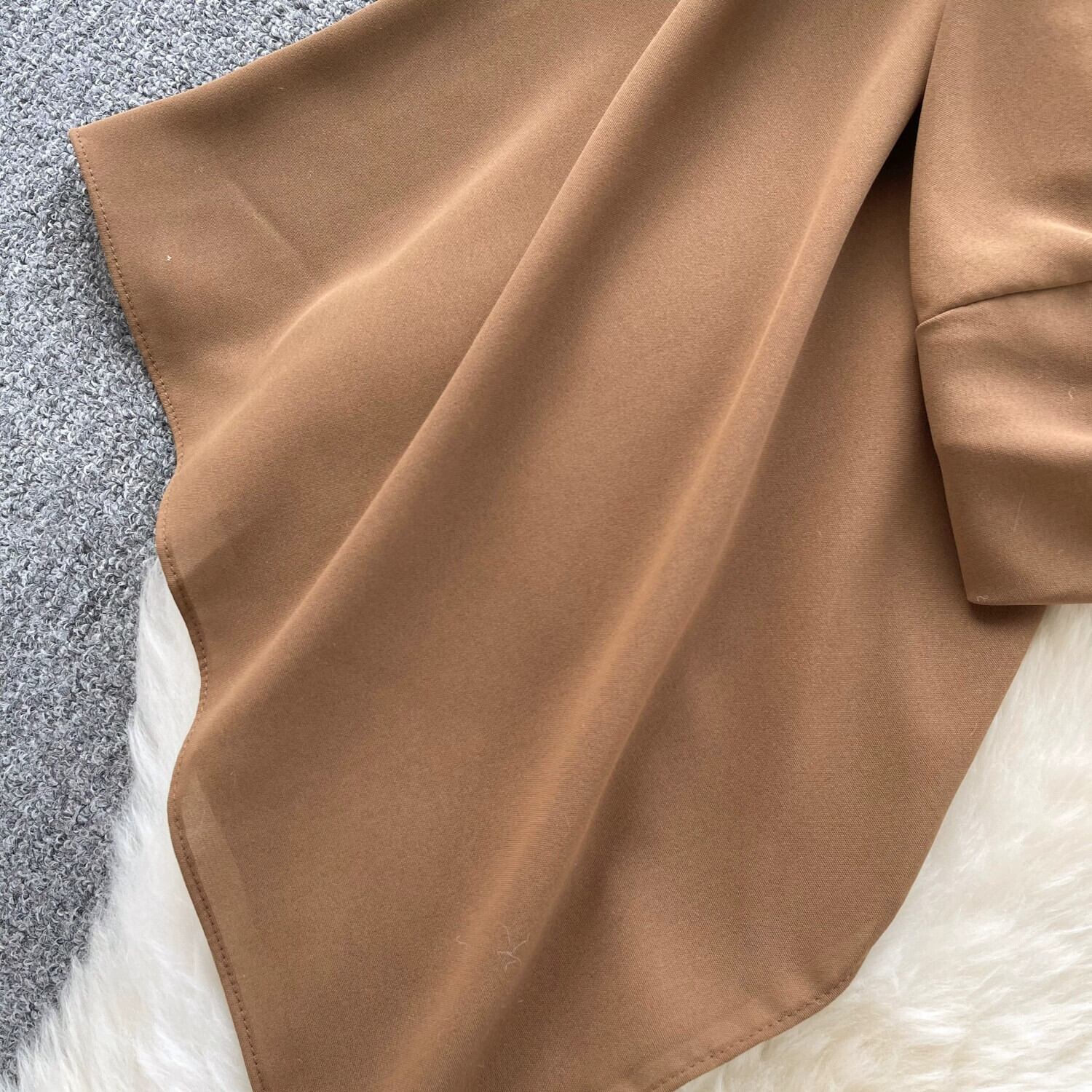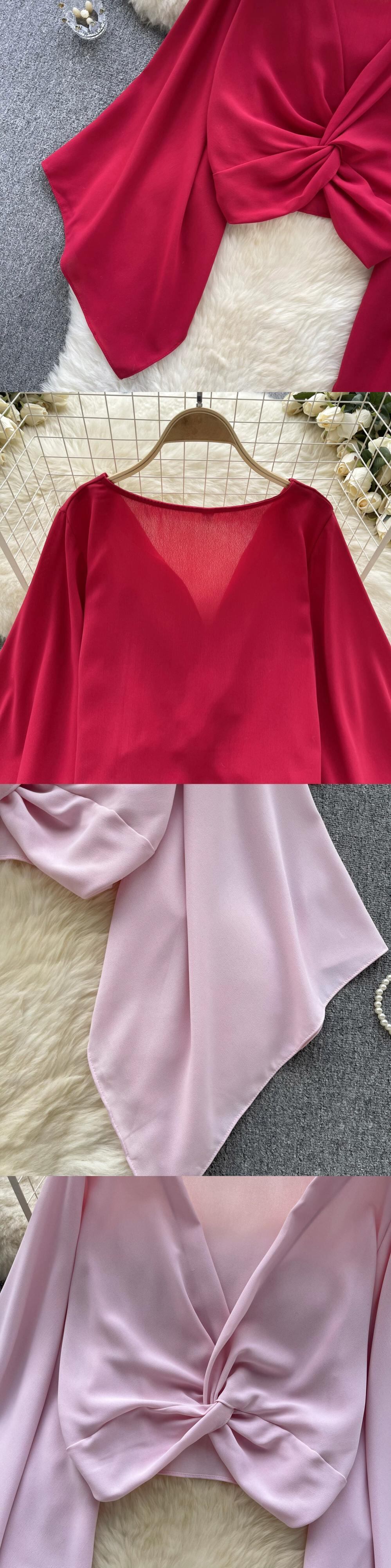 2023 秋の新ニッチデザイン V ネックツイストトランペット長袖シャツレディースフレンチショートシフォントップ ロング オータム 秋物 Vネック lyxaj27129315186