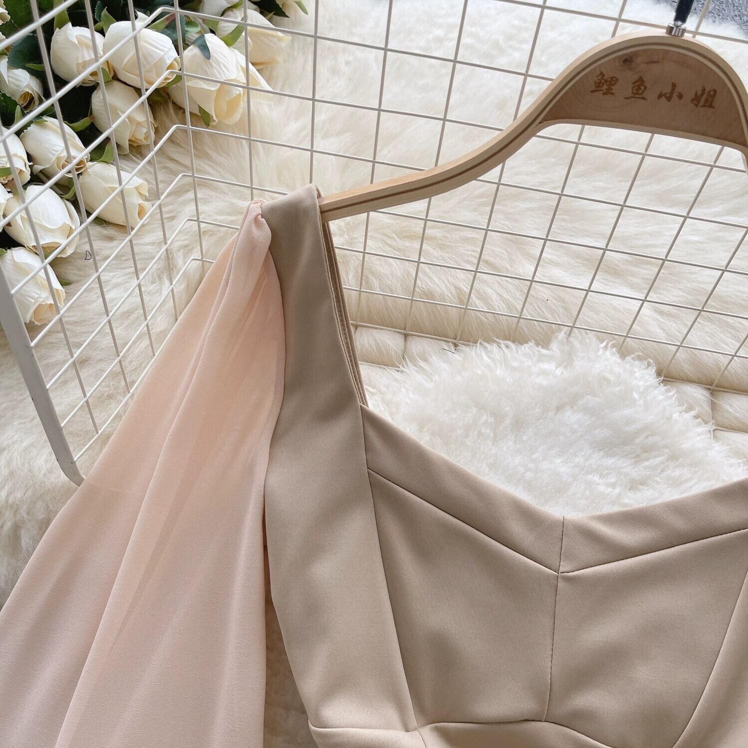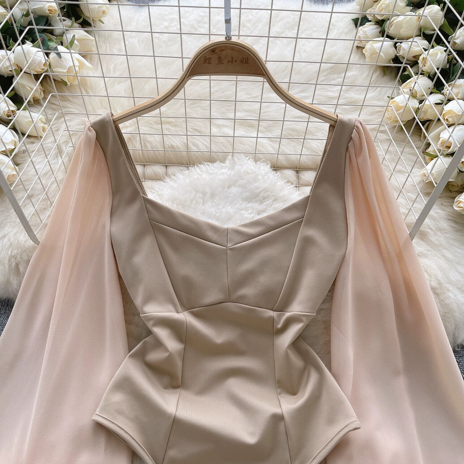 ヨーロッパとアメリカのハイエンドのスクエアネックランタン長袖ジャンプスーツ、フェミニンなウエストとバックレスのインナーTシャツトップがトレンド ロング スクウェア ヨーロピアン lyxaj40450861504