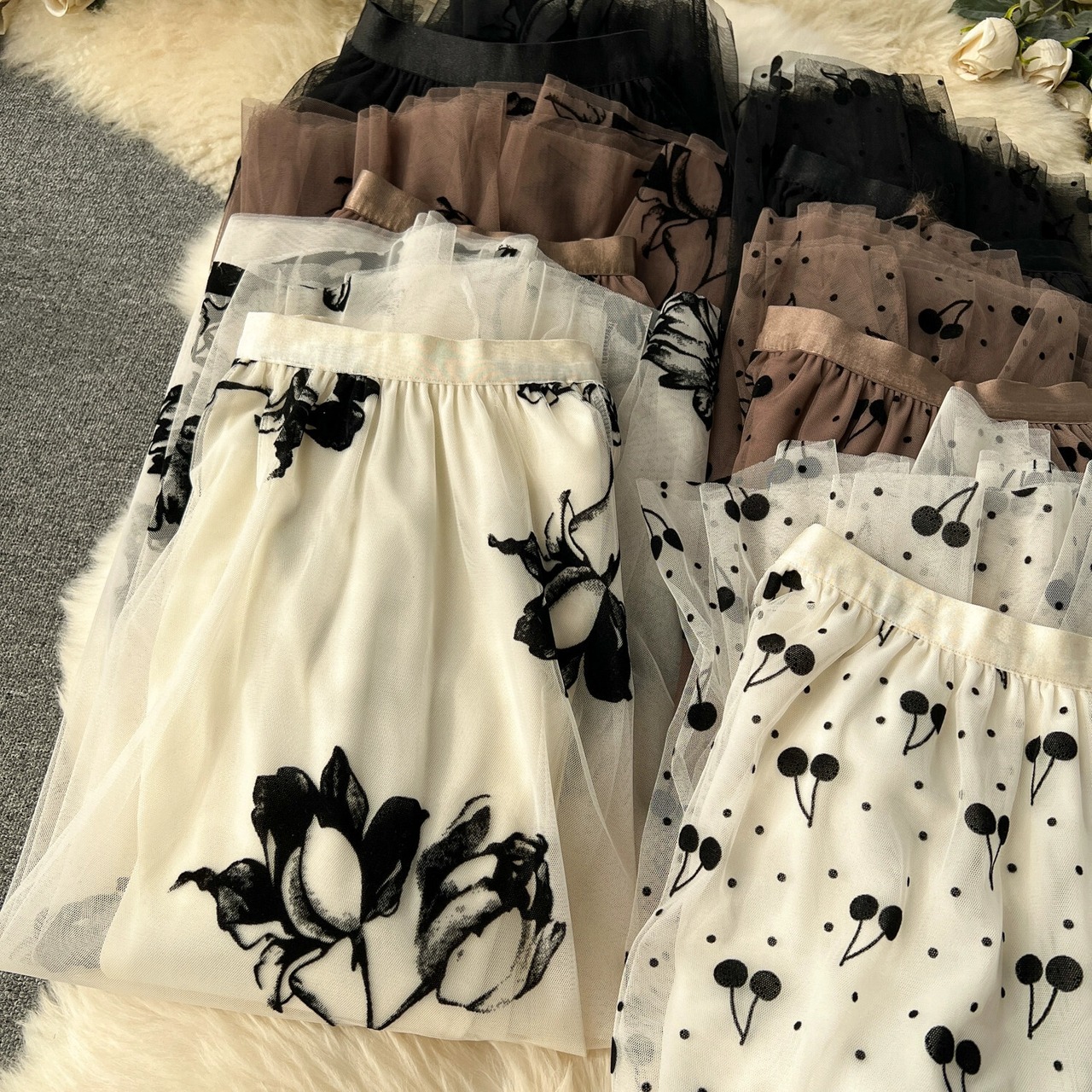色:チェリーアプリコット,チェリーコーヒー,チェリーブラック,花アプリコット,花黒,フラワーコーヒー