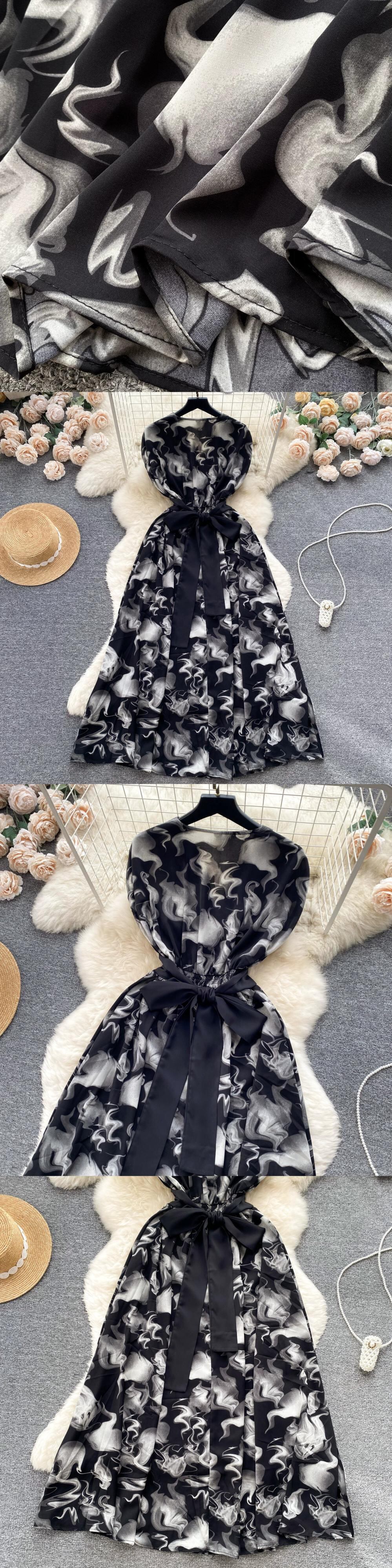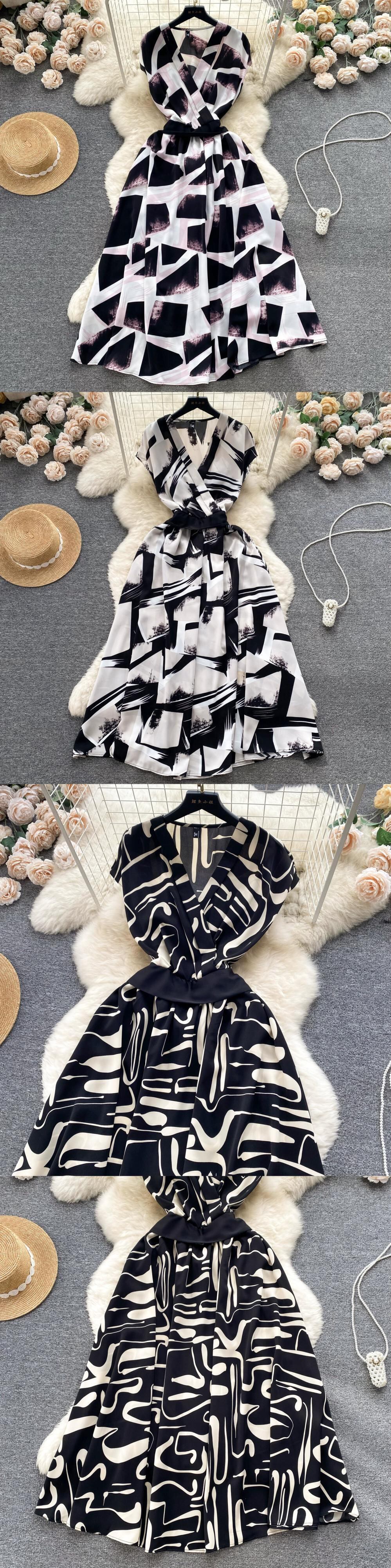 フレンチライト高級レトロノースリーブVネックプリントドレス女性の夏のウエスト痩身エレガントな女性のロングスカート サマー 夏物 lyxaj6711760619