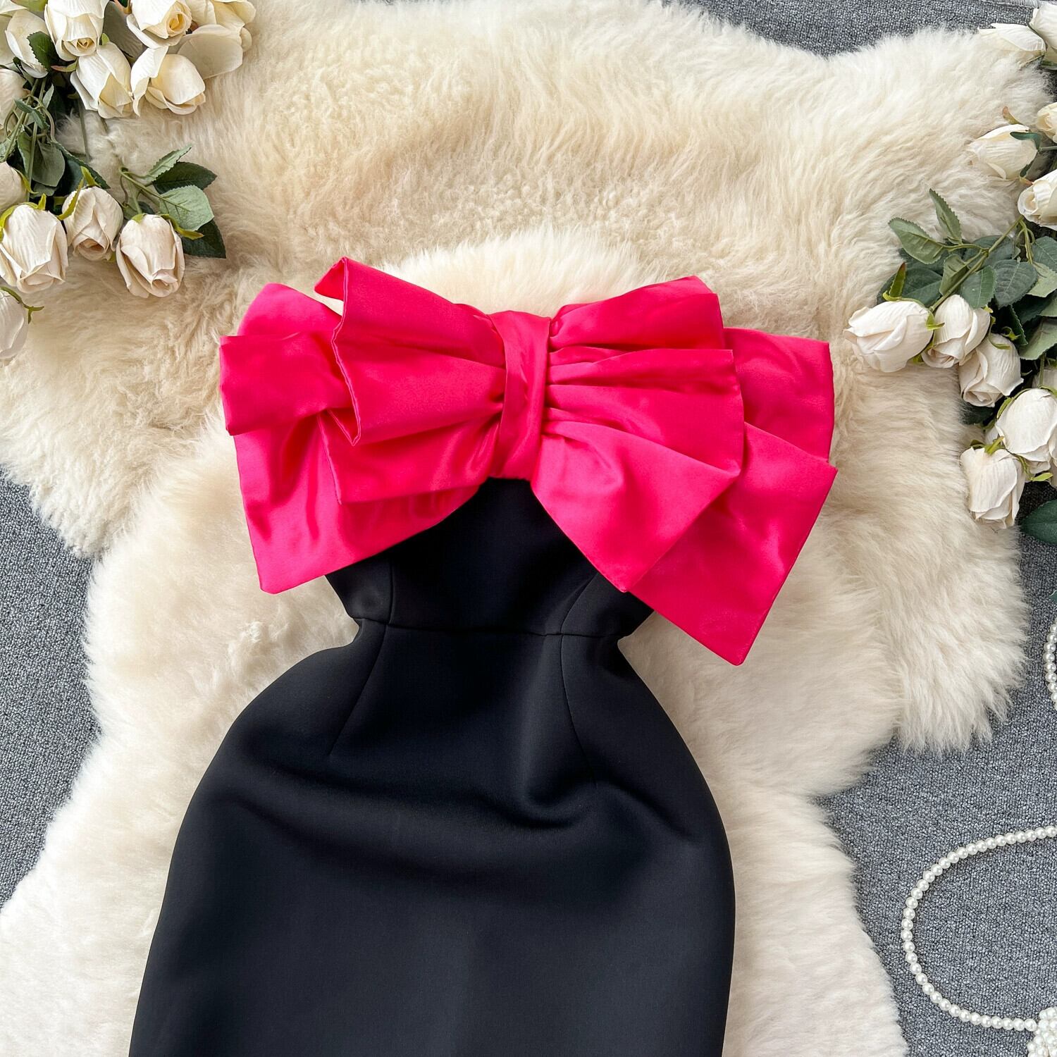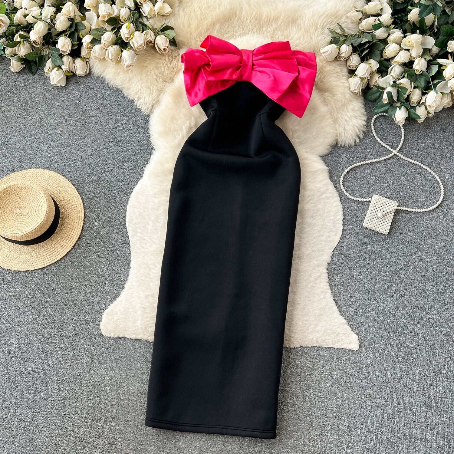 フレンチスタイルの純粋な欲望スタイルの立体ボウチューブトップドレス女性、ハイエンドのウエスト痩身とヒップカバードレス リボン ピュア lyxaj98718356637