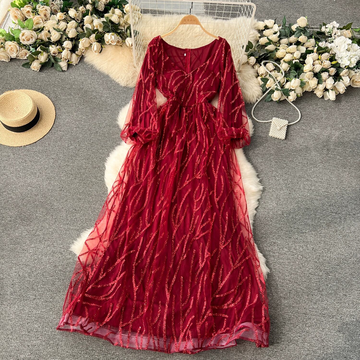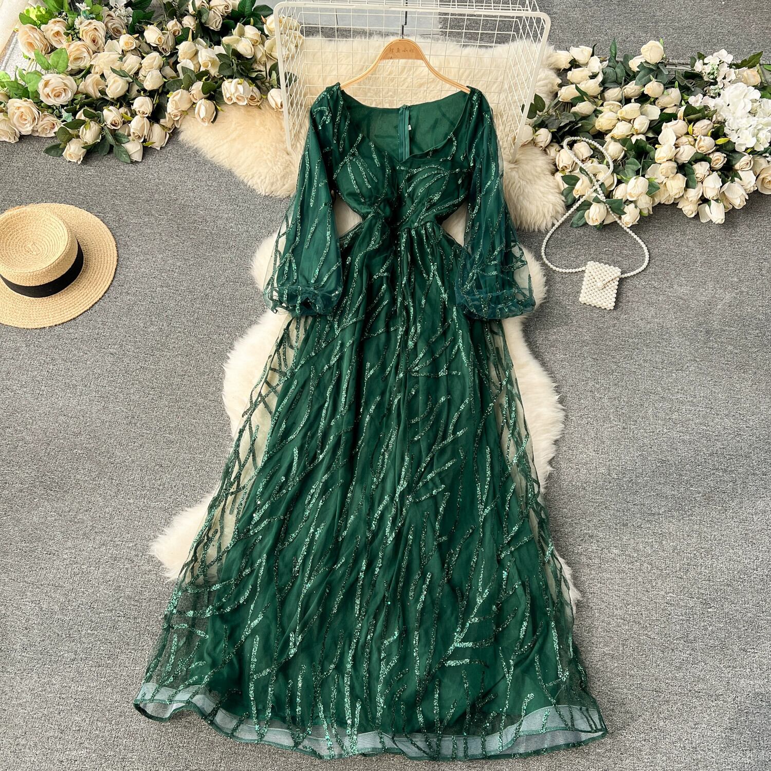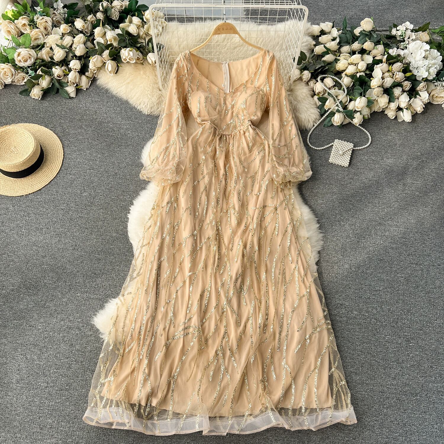 ヨーロッパとアメリカンスタイルのハイエンドドレス、ハイエンドニッチブロンズメッシュロングドレス、ハイウエスト痩身ドレス、トーストドレス ヨーロピアン lyxaj18076541073