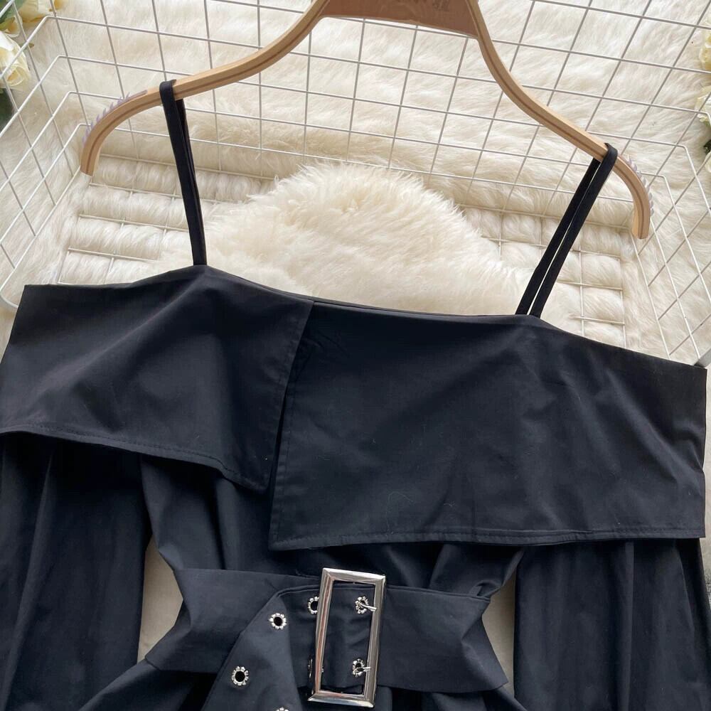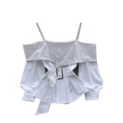 センス春夏ワンラインカラーストラップオフショルダースイートリボンストラップウエスト痩身スカートフェアリートップトレンディ 大人ガーリー スウィート キュート カジュアル スプリング 春物 サマー 夏物 lyxaj89906271041