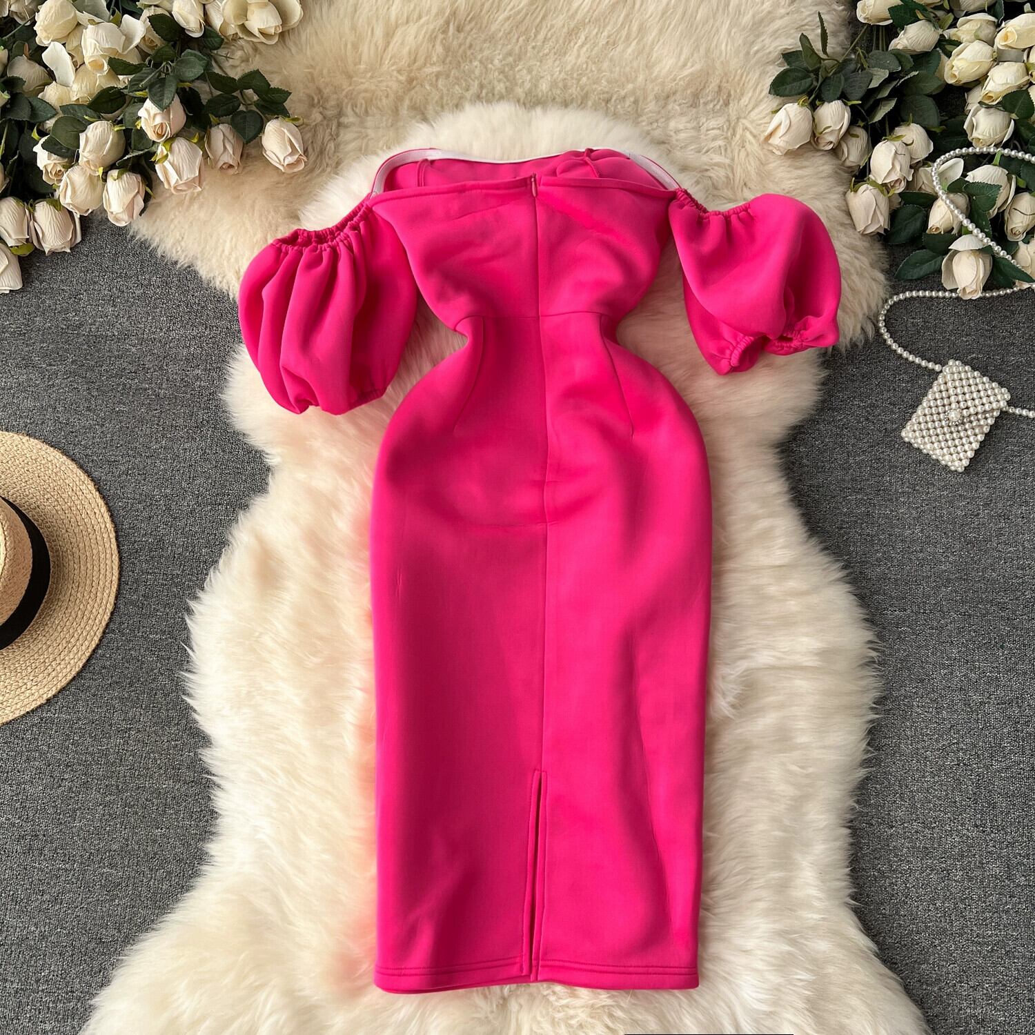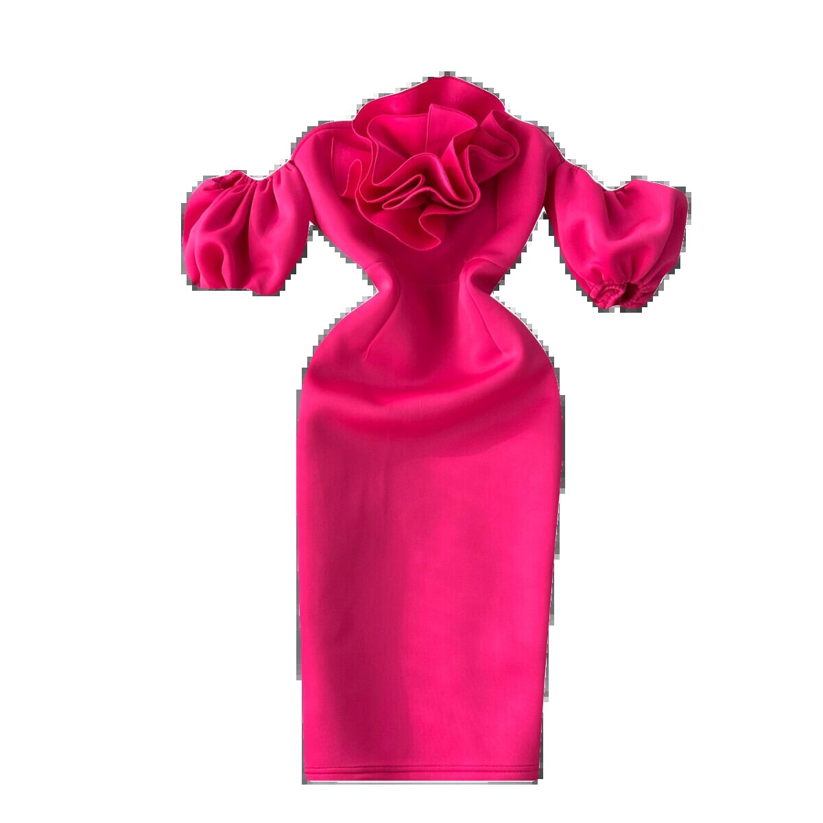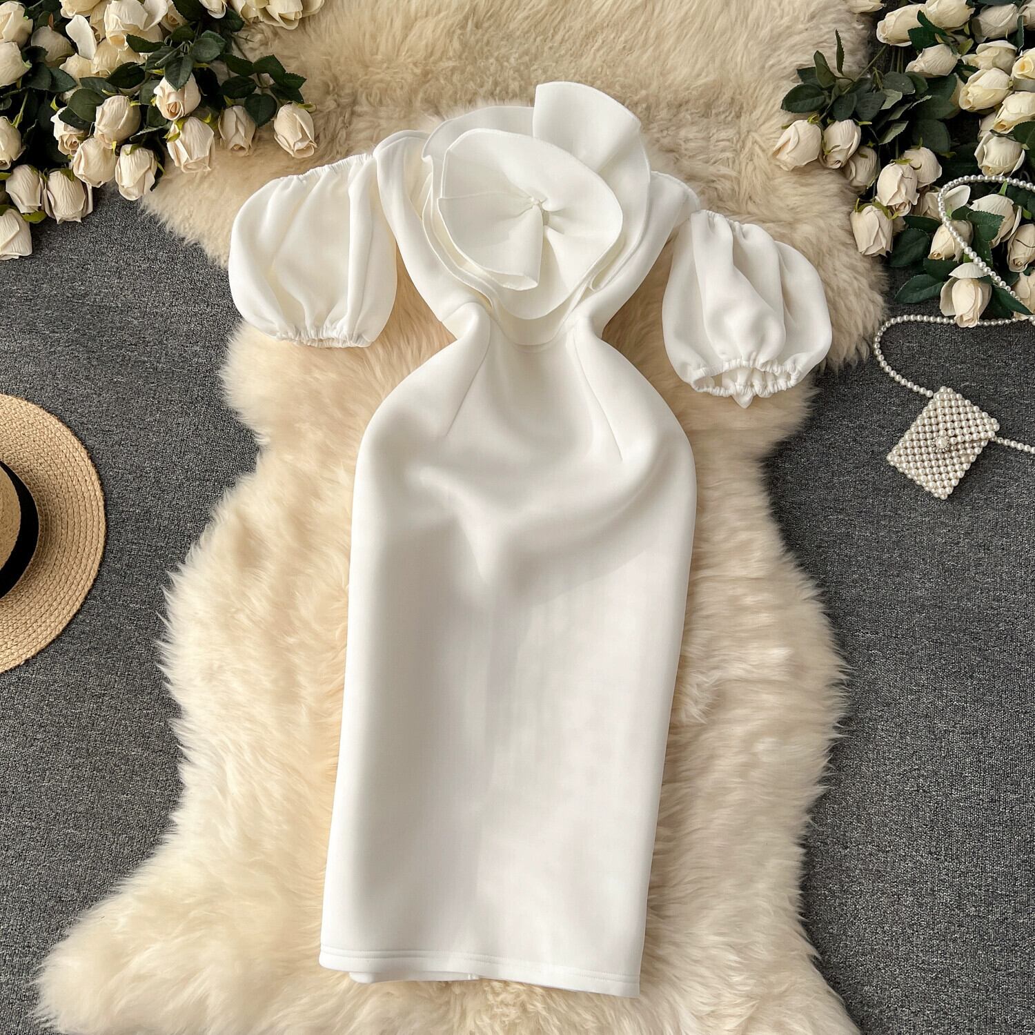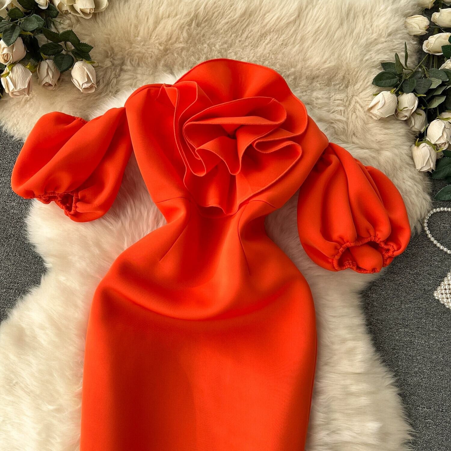 - エンドライト ラグジュアリー ロイヤル シスター パーティー ドレス ワンショルダーの立体的なローズ パフ スリーブとウエストのエレガントなドレス lyxaj13094887085