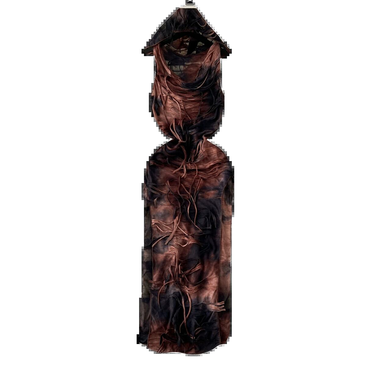 アジアン スタイルの絞り染めフード付きノースリーブ ドレス女性秋と冬のレトロな古いテル スリット純粋な欲望のロング スカート オータム 秋物 ウィンター 冬物 ピュア lyxaj71318937381