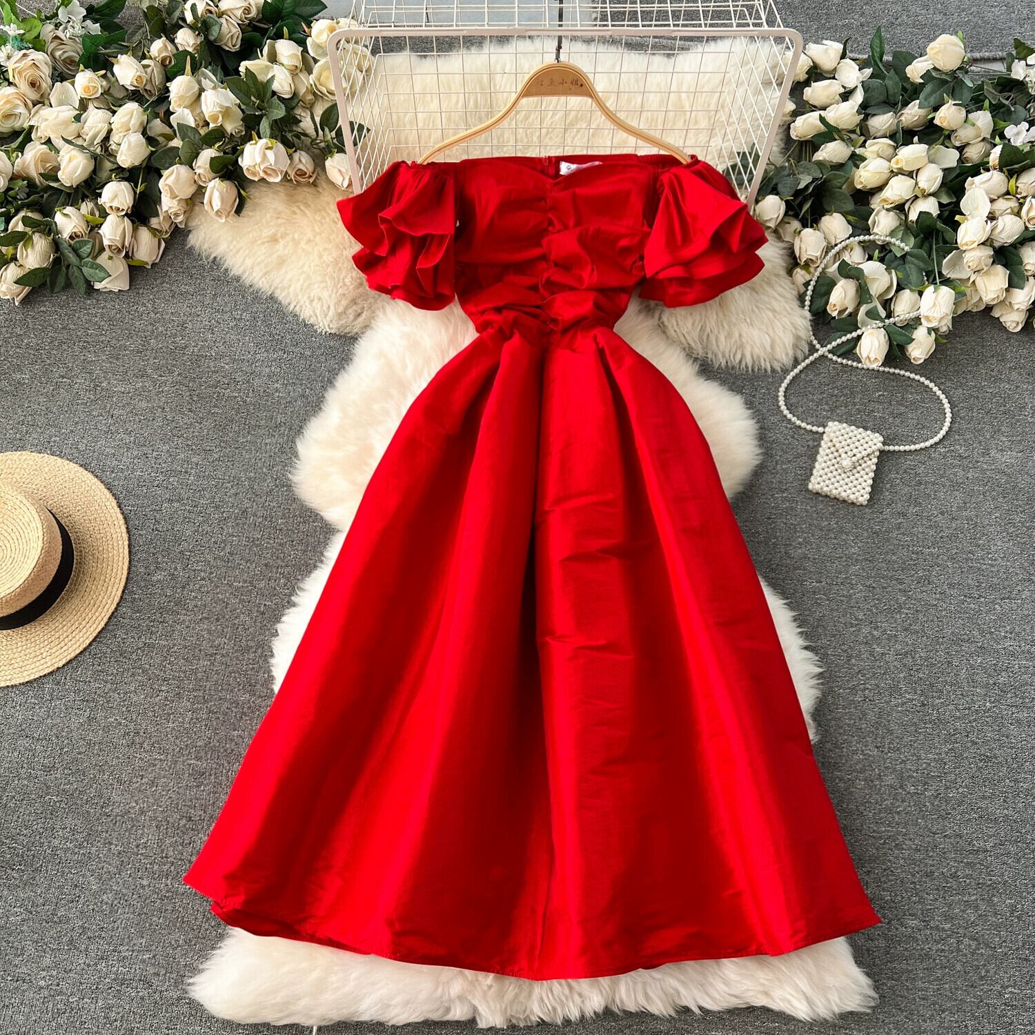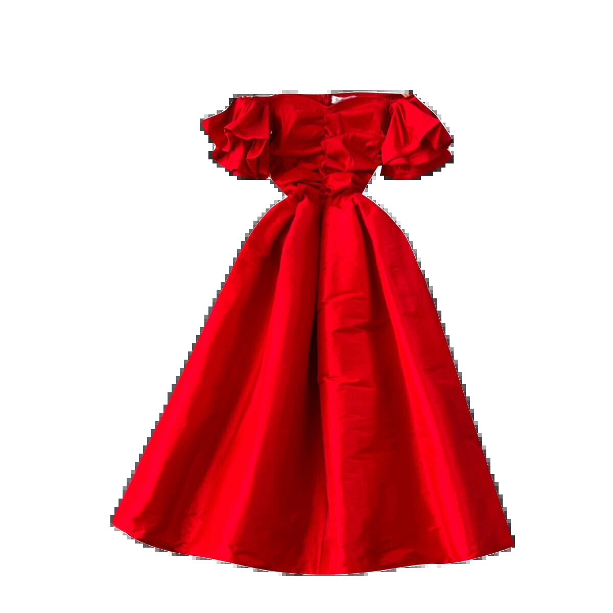 赤いドレス、高級ドレス、セクシーなワンショルダープリーツ、スリム、ロング、大きなスイング、高級ニッチトーストドレス レッド lyxaj33305389954