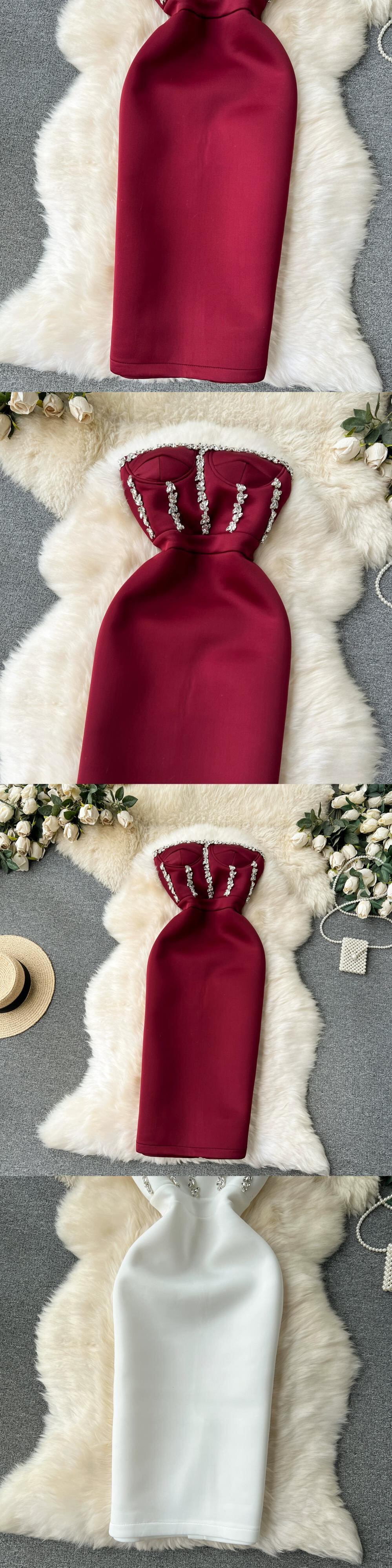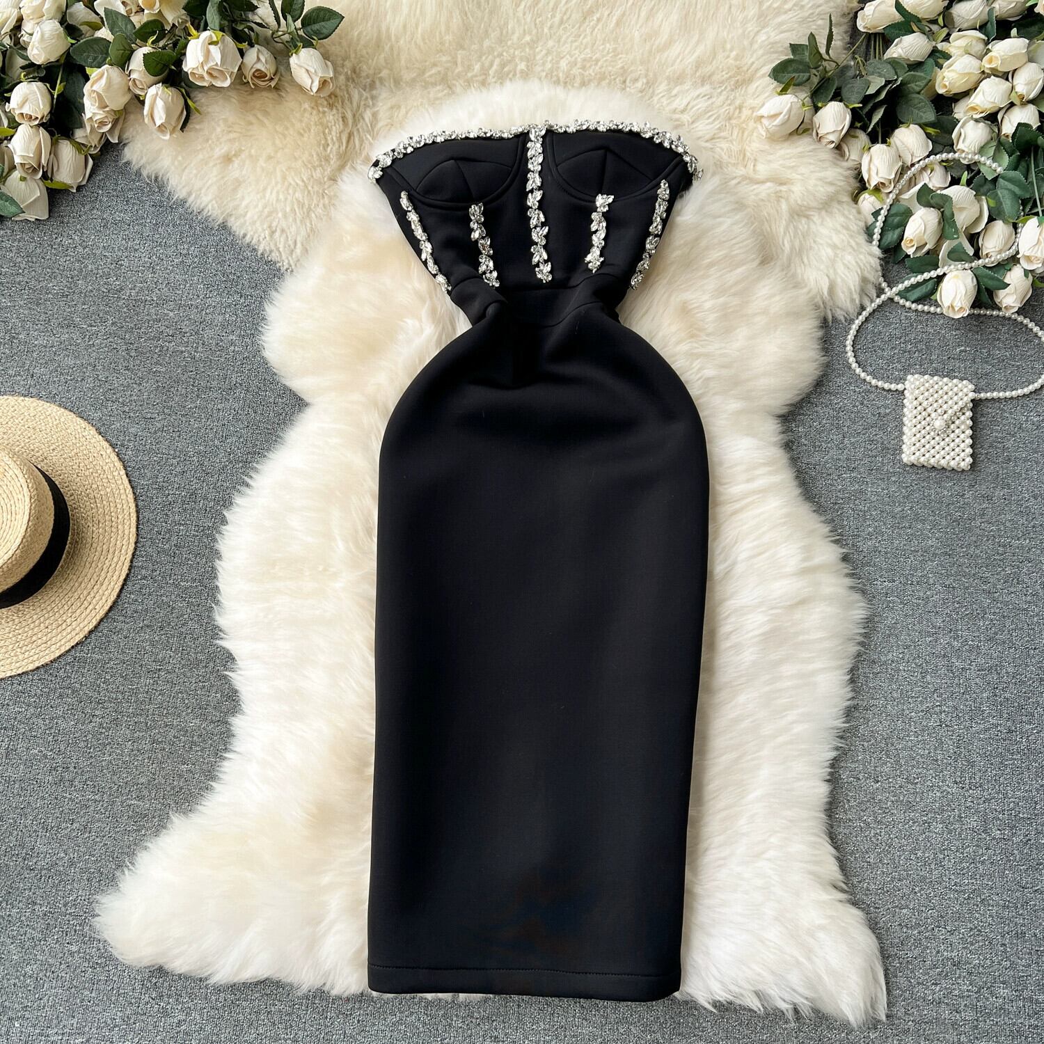 -エンド社交家ライトラグジュアリーニッチダイヤモンドがちりばめられたチューブトップドレスハイエンド気質スリムスリムバックレスセクシードレス lyxaj3731434323