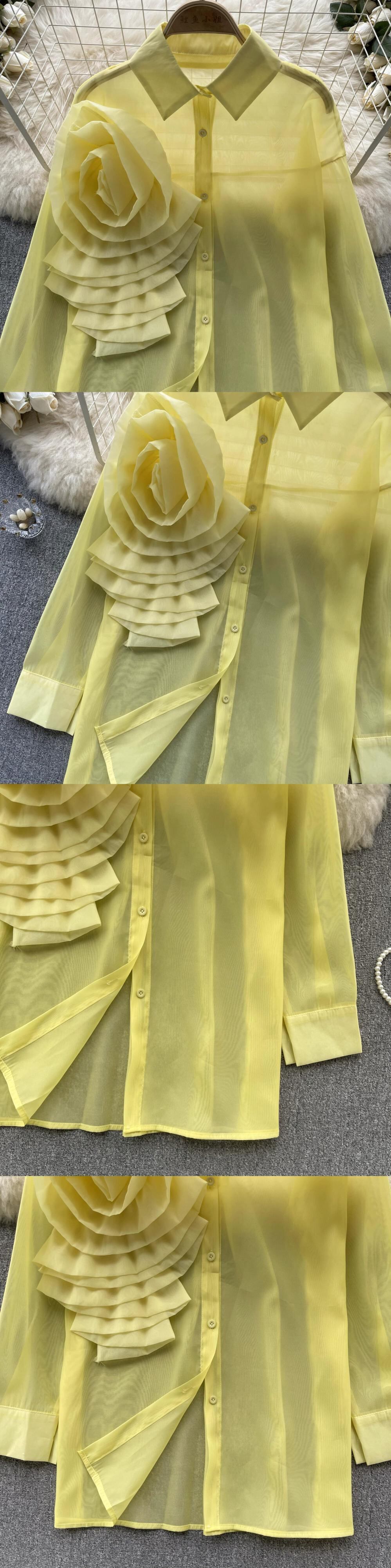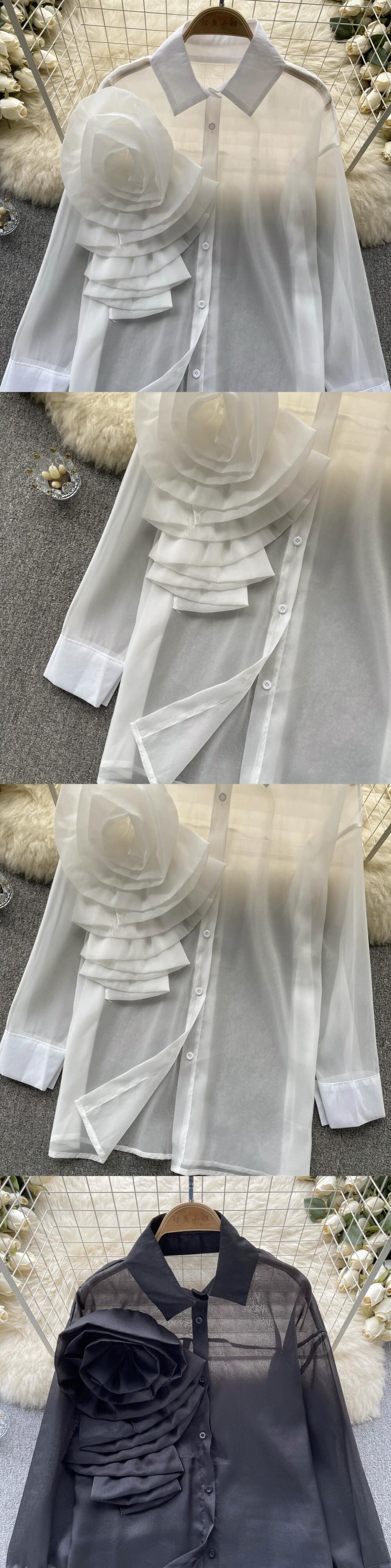 宮殿スタイルのフレンチシャツの女性 2023 新しいスタイルのハイエンド立体フラワーシースルールーズ多用途シックな eign スタイルトップ レース フラワーデザイン lyxaj96125154397