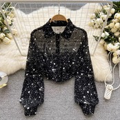 2024 春フランスポロ襟プリント刺繍星長袖シャツ女性のトップス ロング レッド スプリング 春物 lyxaj76046779928