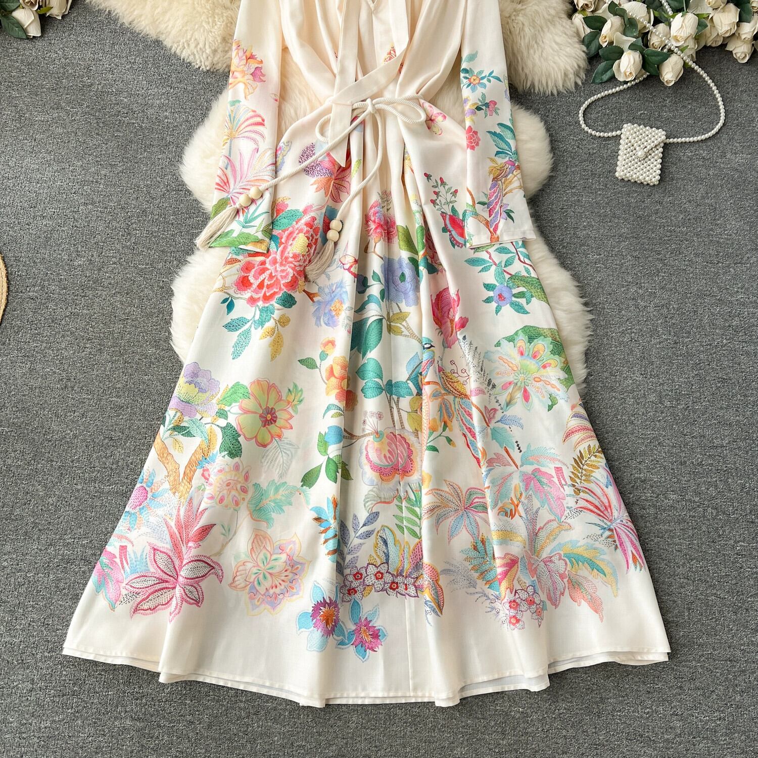 ブロッサム 2024 早春プリント スリム ロング ラージ スイング エンド ドレス ドレス レディース スプリング 春物 lyxaj76487742115