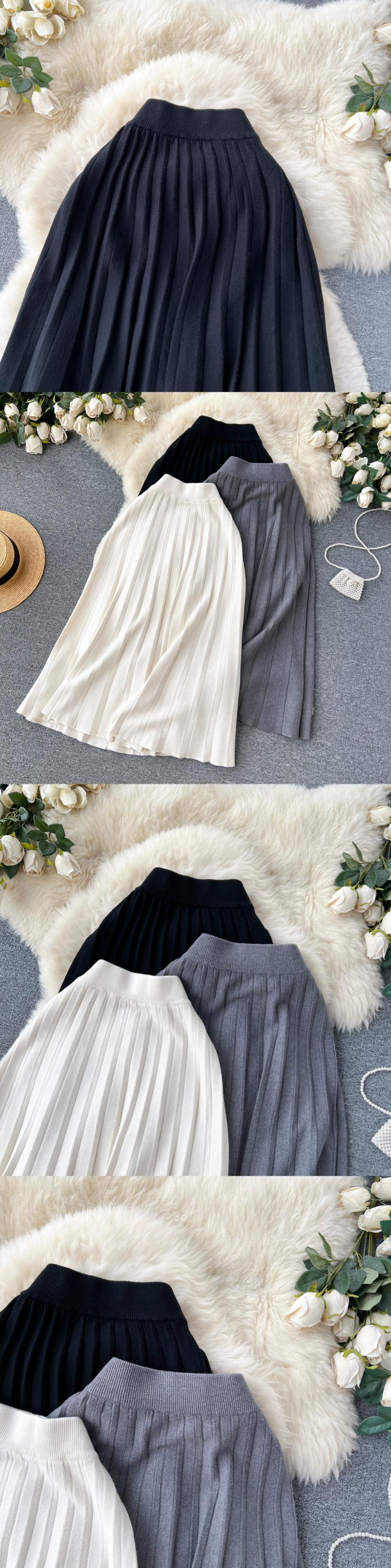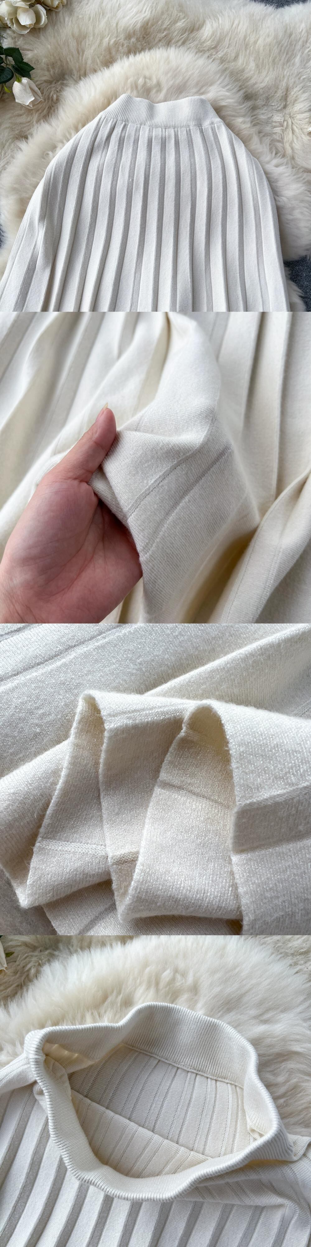 ニットスカートの女性 2023 秋の新しいハイウエスト痩身ミッドレングス万能スカート、股間をカバーし、ドレーププリーツスカート オータム 秋物 lyxaj15470088819