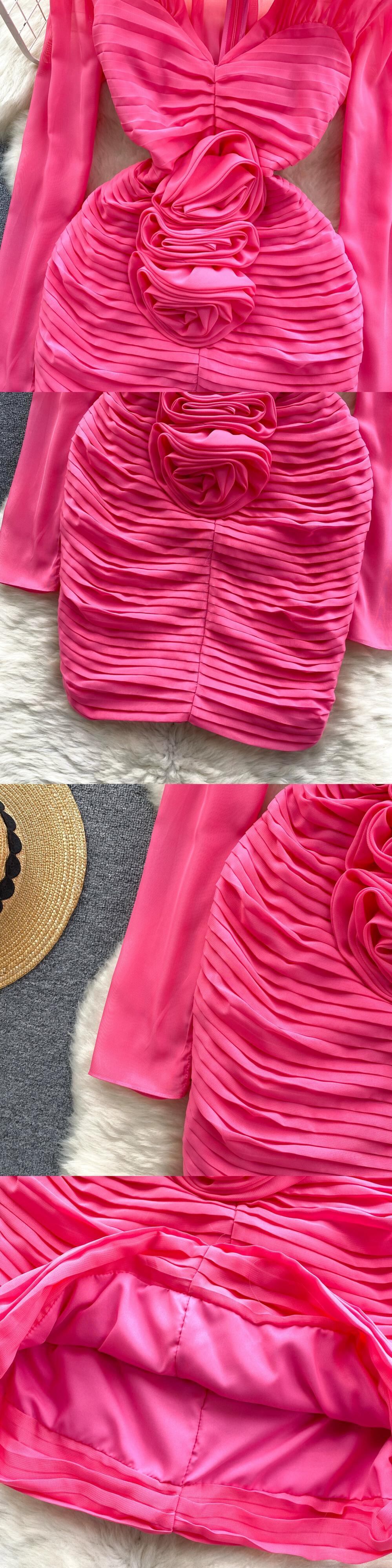 フランスの高級ドレス、レディライクなスタイル、高級ニッチ、立体花柄プリーツスリムフィットヒップスカート、気質ドレス女性 lyxaj42114030986