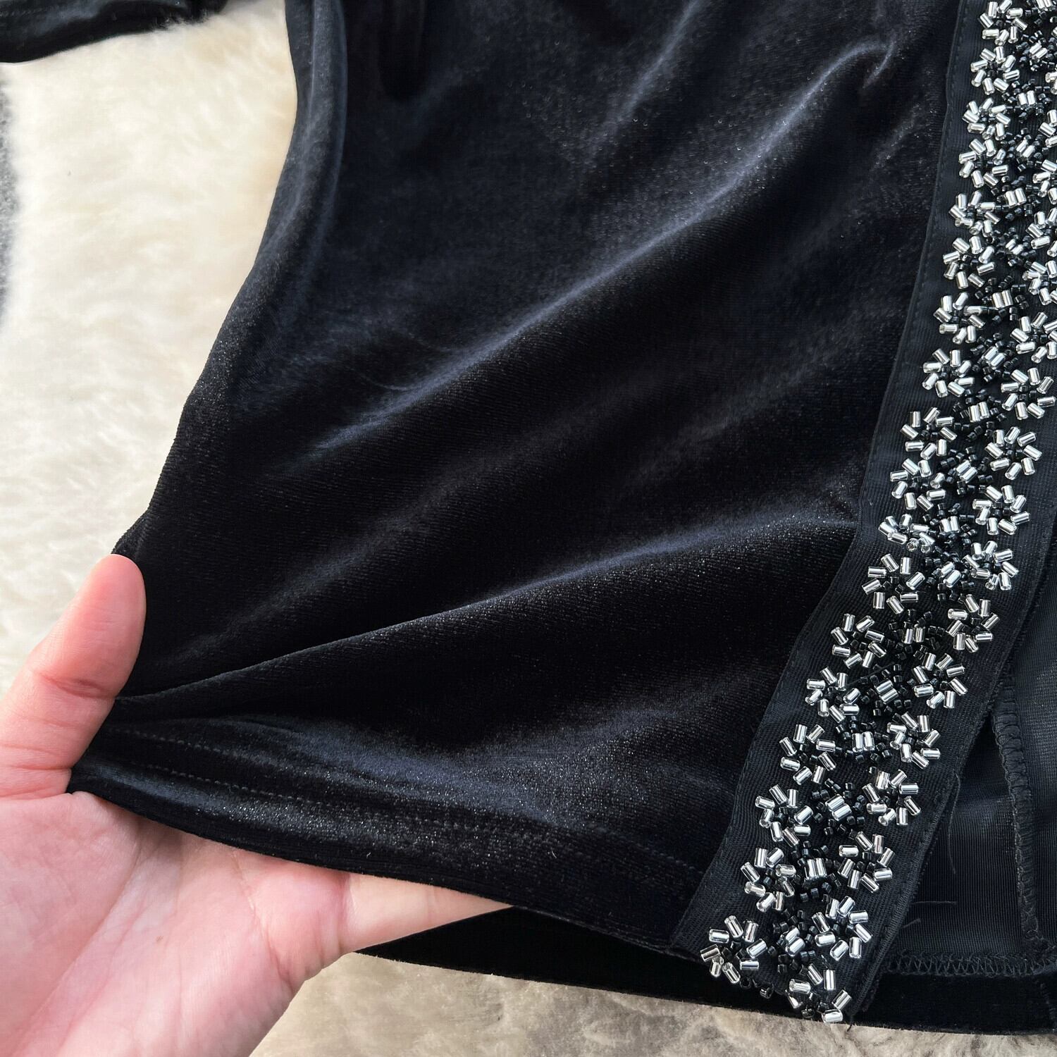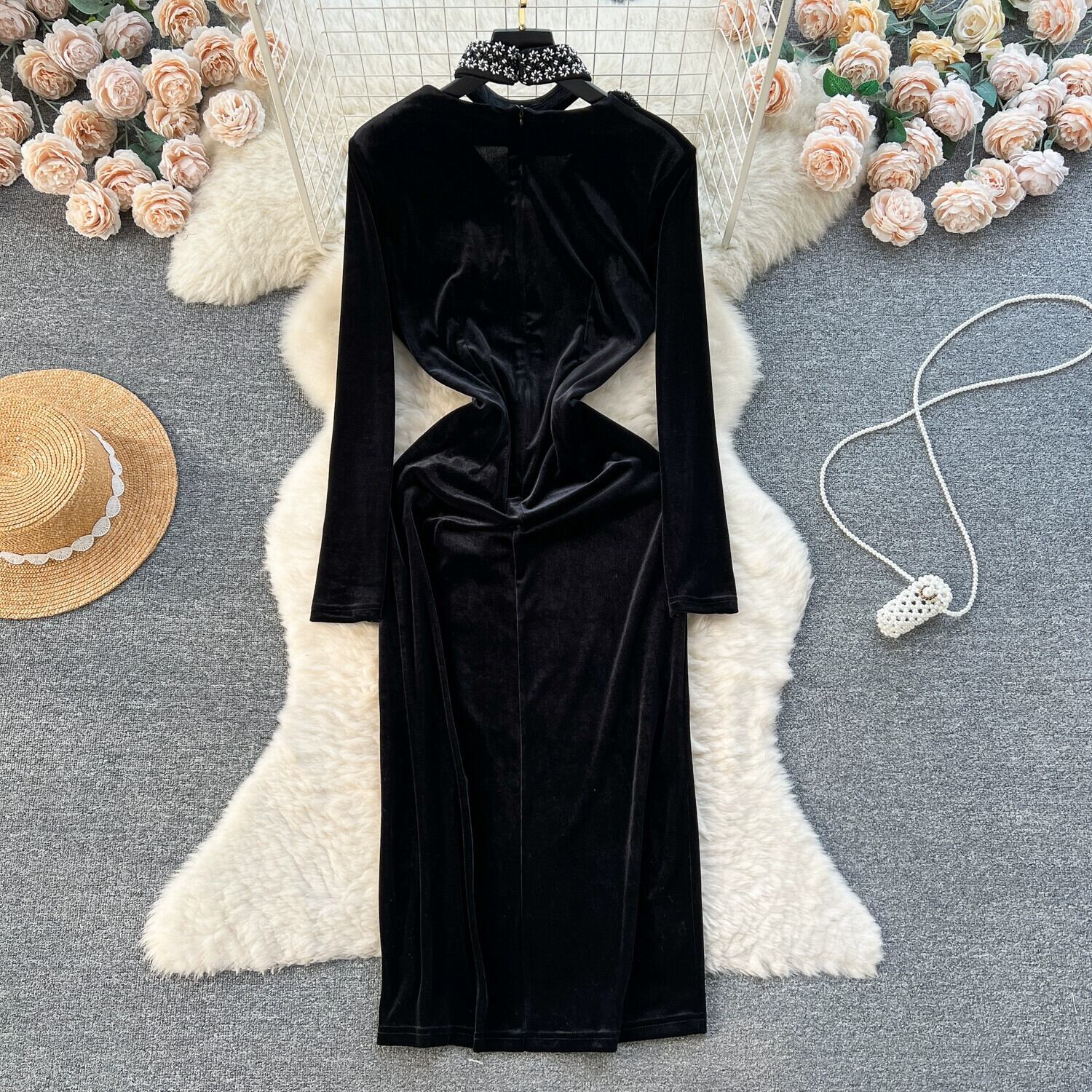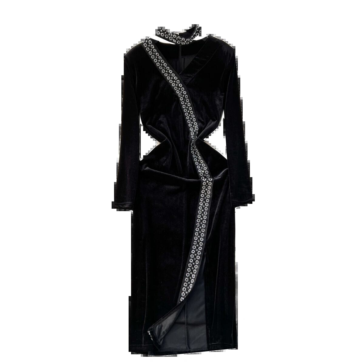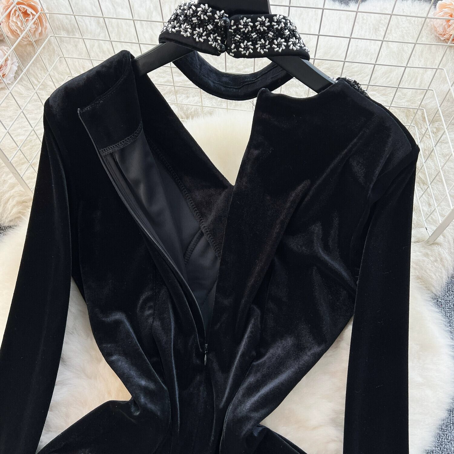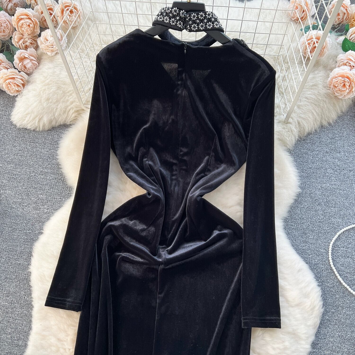 ライト成熟したスタイルの婦人服ライト高級重工業ビーズスリムミッドレングスレトロベルベットドレス気質ドレス春のドレスの女性 スプリング 春物 lyxaj84215559727