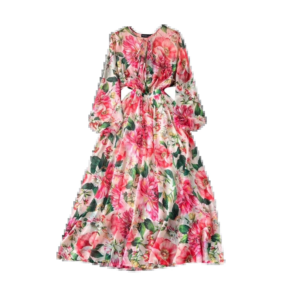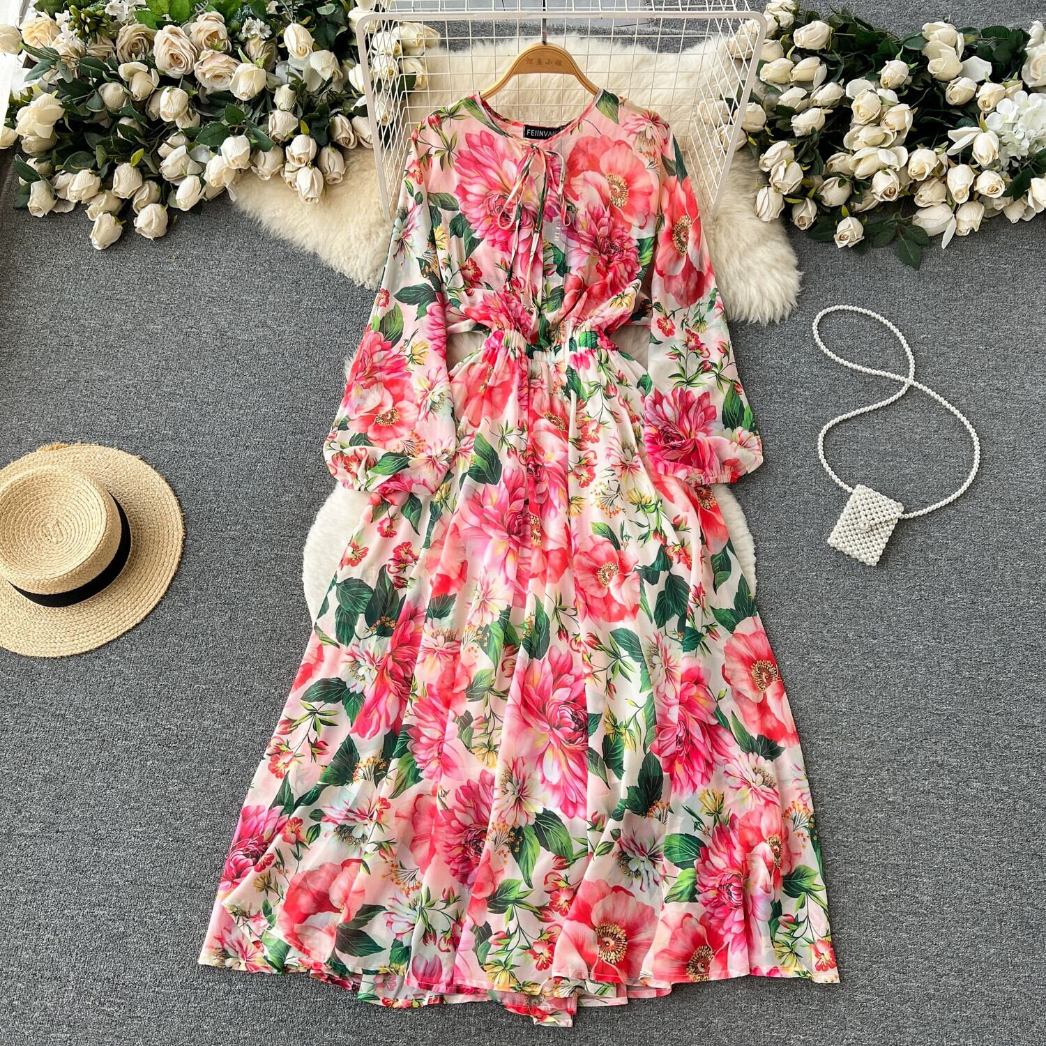 春の新スタイルフレンチホリデースタイルプリントロングスカート女性春と秋の新しいウエスト妖精シフォンドレス スプリング 春物 オータム 秋物 lyxaj68613178661