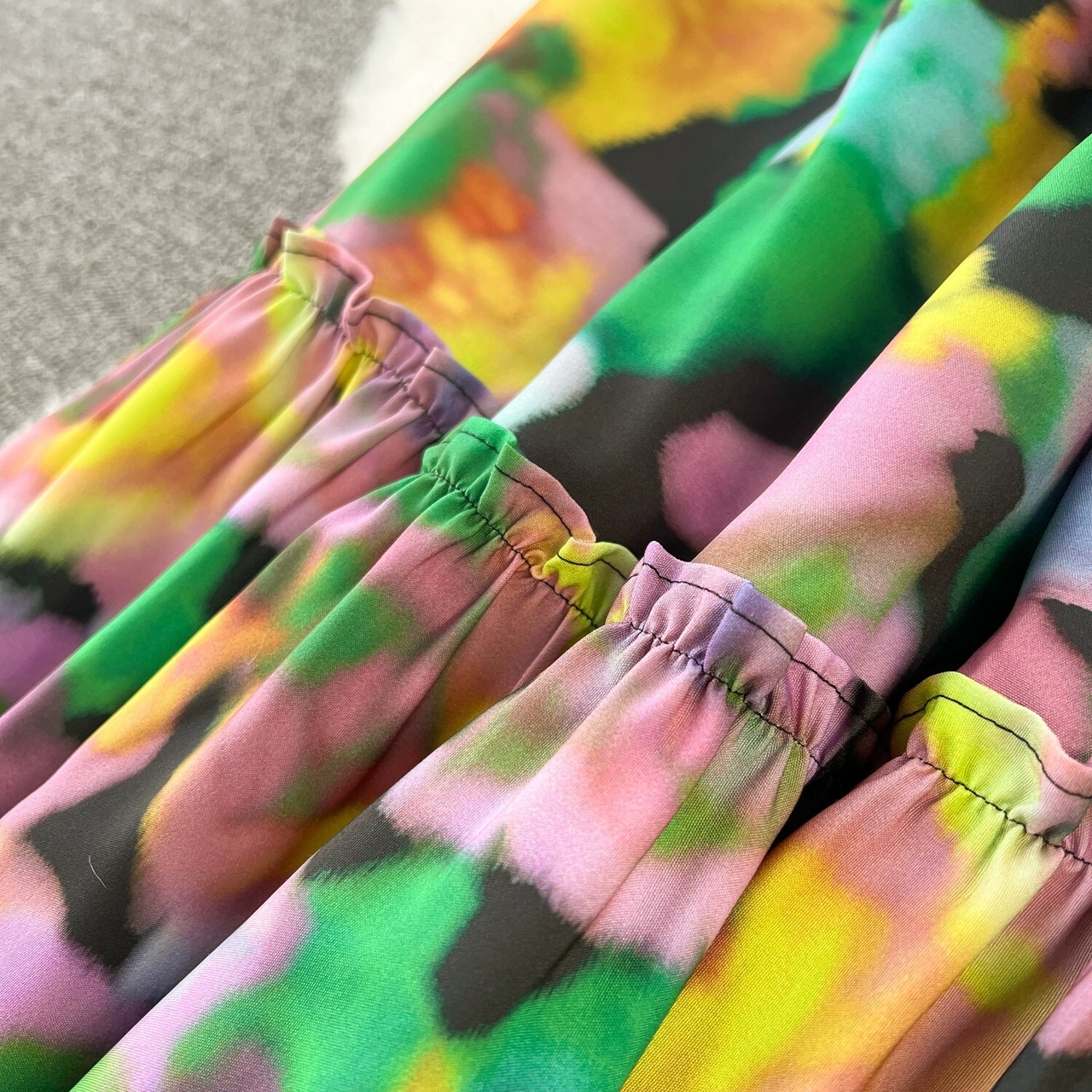 2024初春の新しいスタイルのワンラインカラーオフショルダールーズスリムミッドレングスフリルレトロプリントホリデードレス スプリング 春物 lyxaj633033312