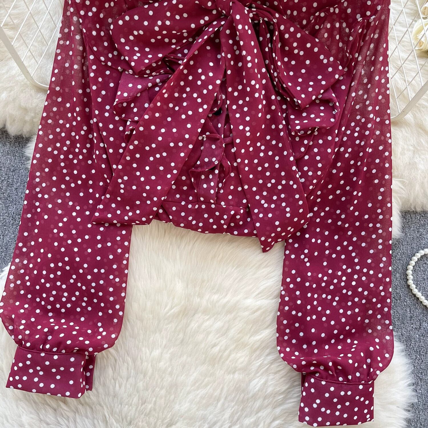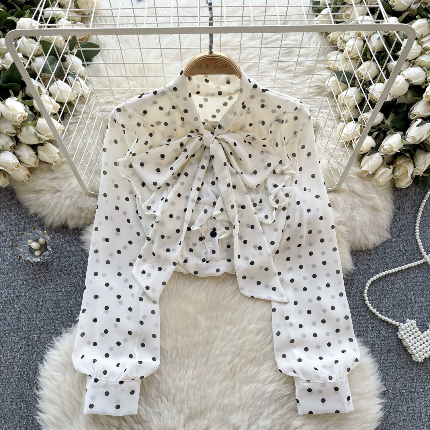 フランスのレトロな水玉模様のシフォンシャツ女性 2024 初春の新しい通勤女性の甘い弓シャツトップ リボン 大人ガーリー スウィート キュート カジュアル スプリング 春物 lyxaj15832998863