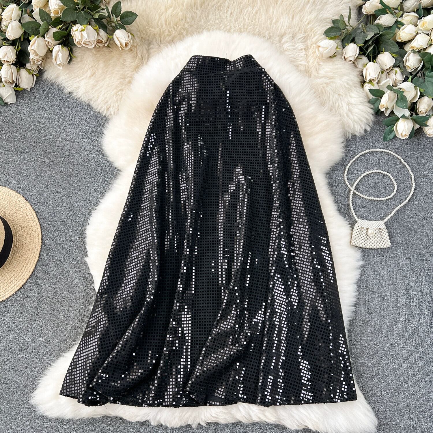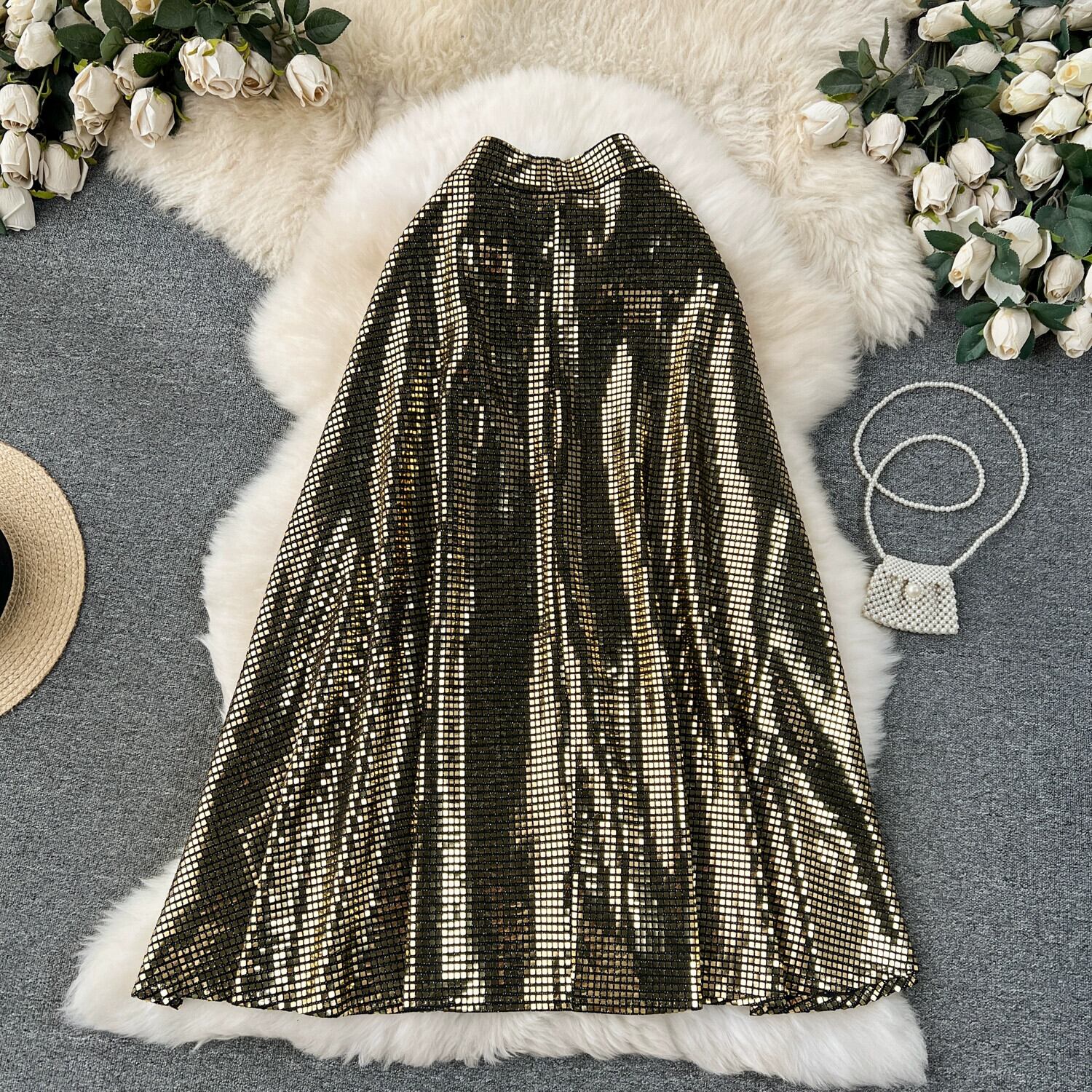 - エンドライト高級スパンコールスカートレディース、Aラインウエスト痩身、ロングスタイル、ハイエンド、多用途、大きなスイングスカート、春ドレスレディース スプリング 春物 lyxaj82964909285