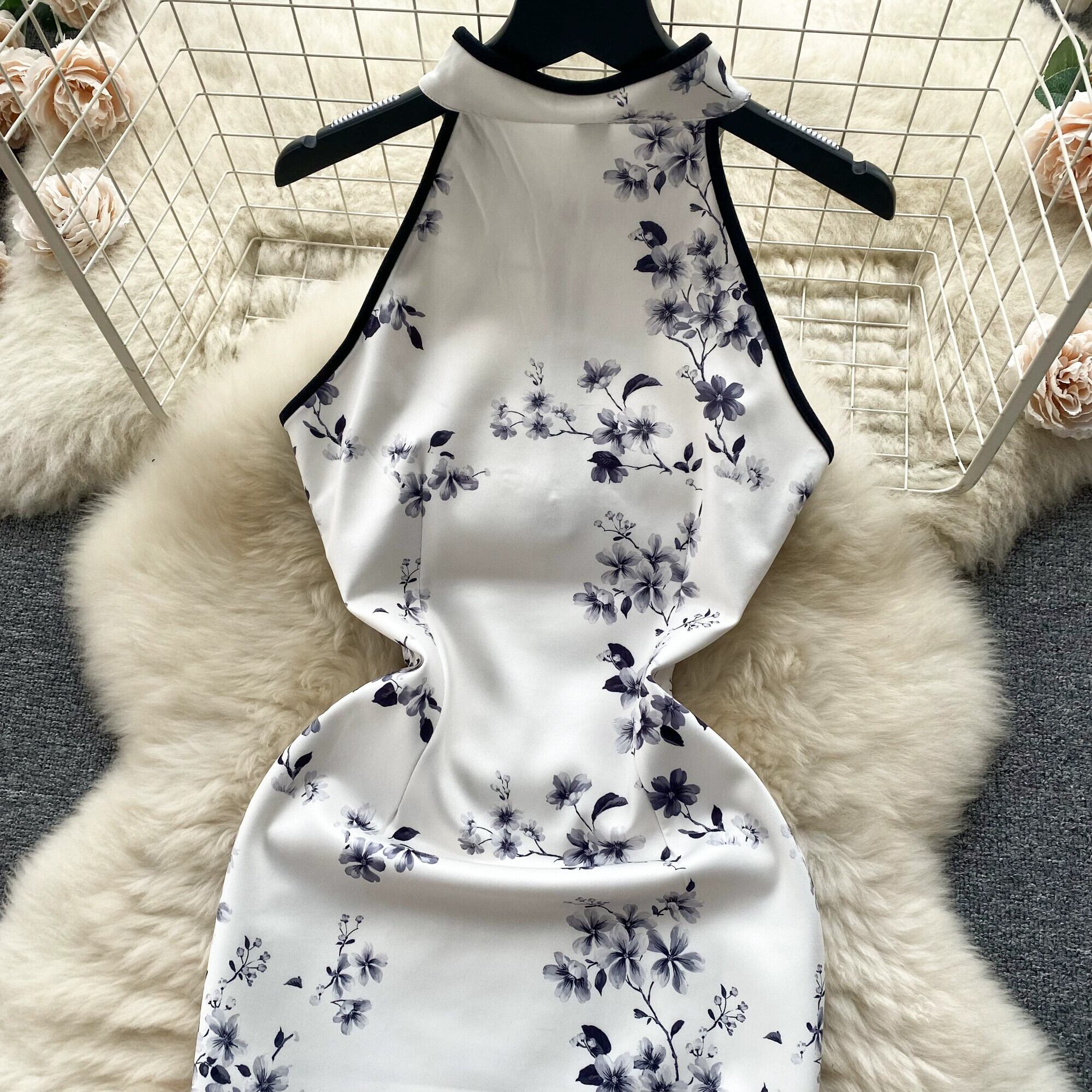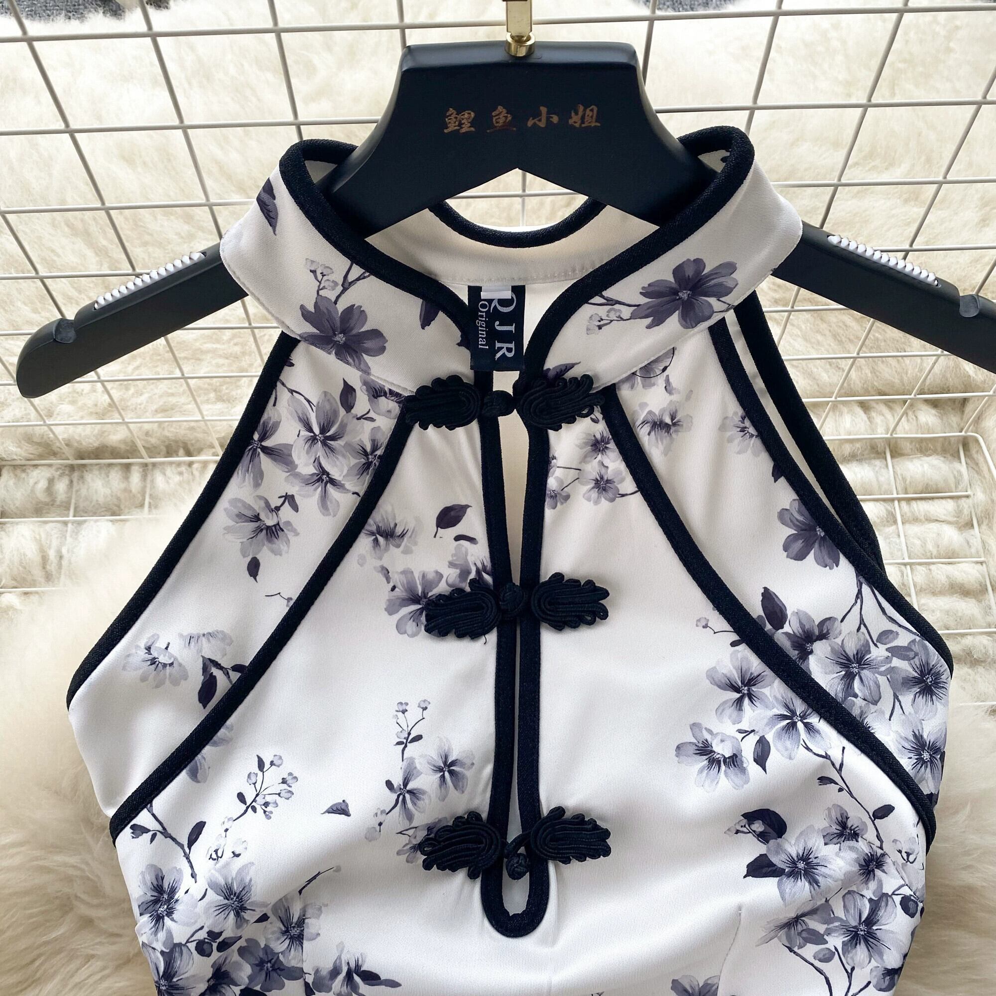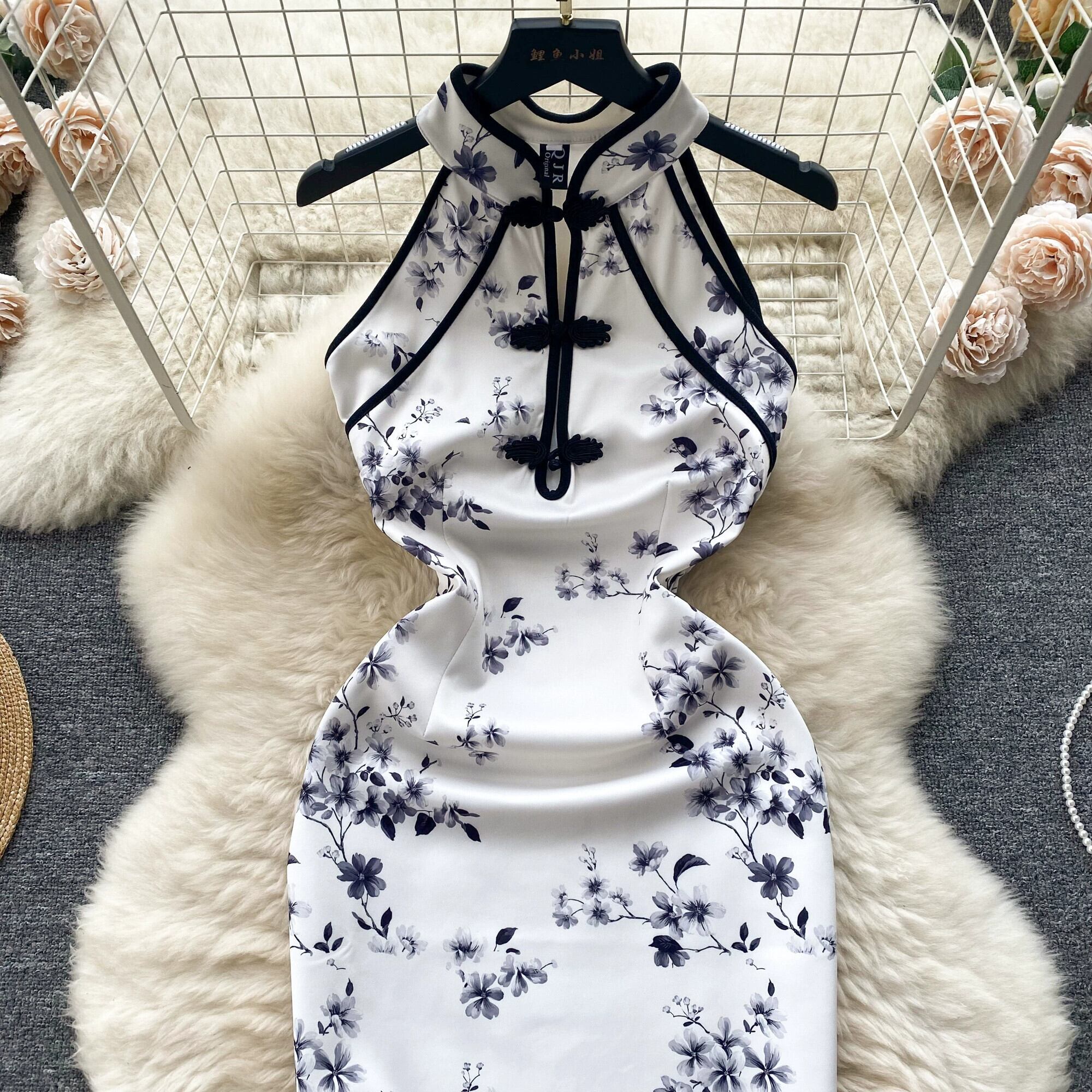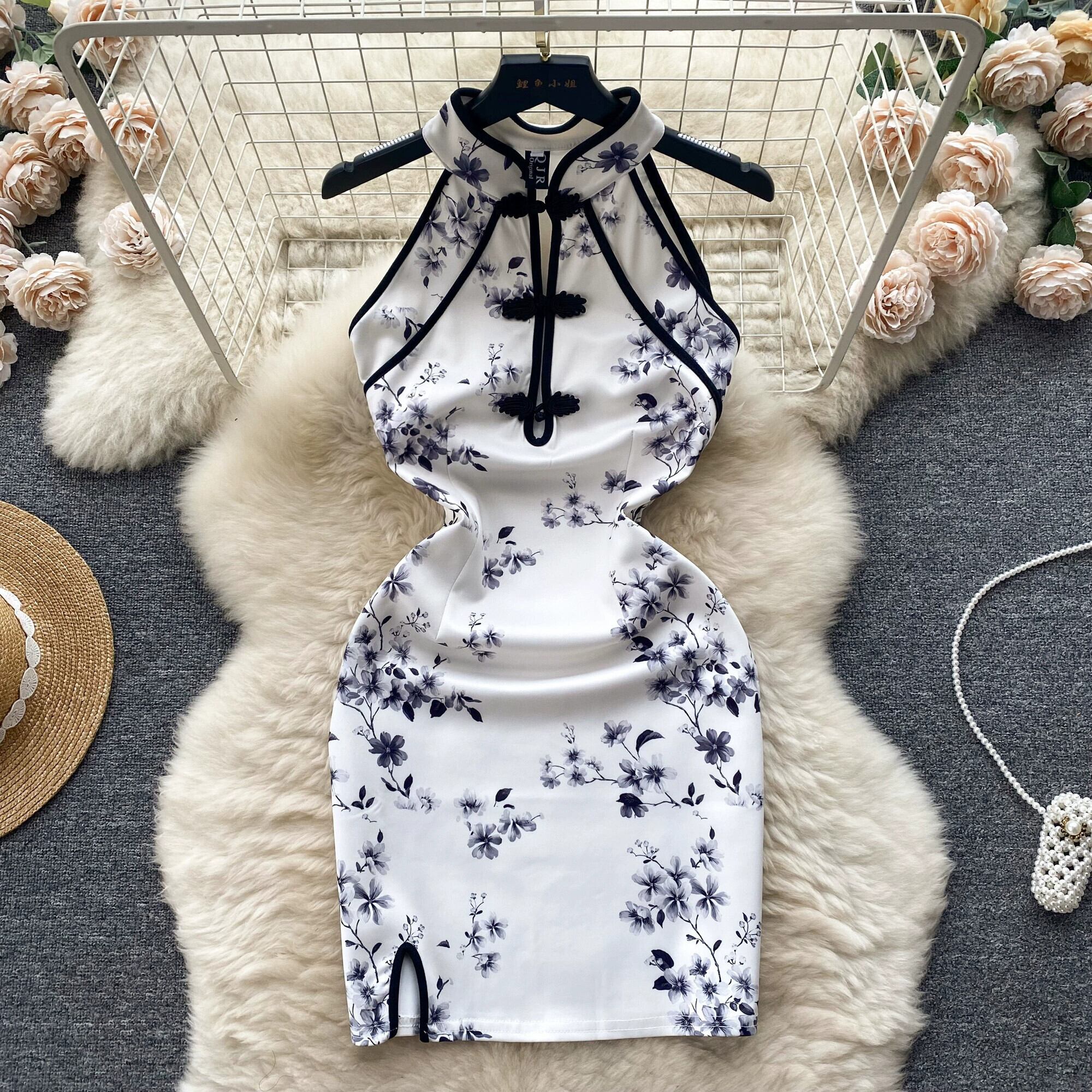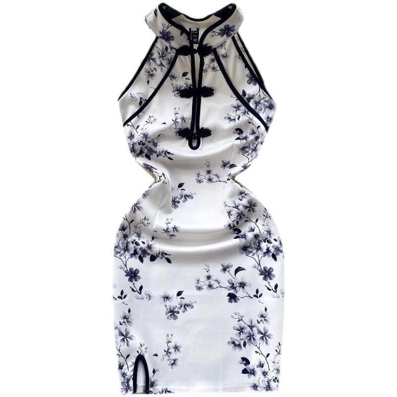 夏の新しいフレンチレトロ改良チャイナドレス中空セクシーなプリントドレスの女性のスリムスリムスリットスカート サマー 夏物 lyxaj6174283408