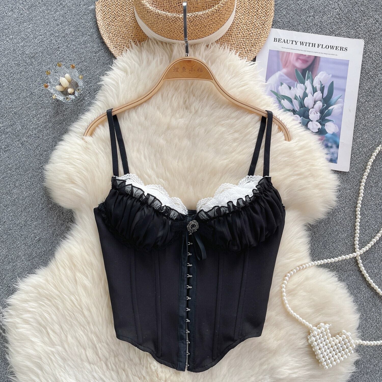 フレンチスイートインナーキャミソールレディース、コントラストカラーレースコルセット、セクシーなトップアウター 大人ガーリー スウィート キュート カジュアル lyxaj63065412759