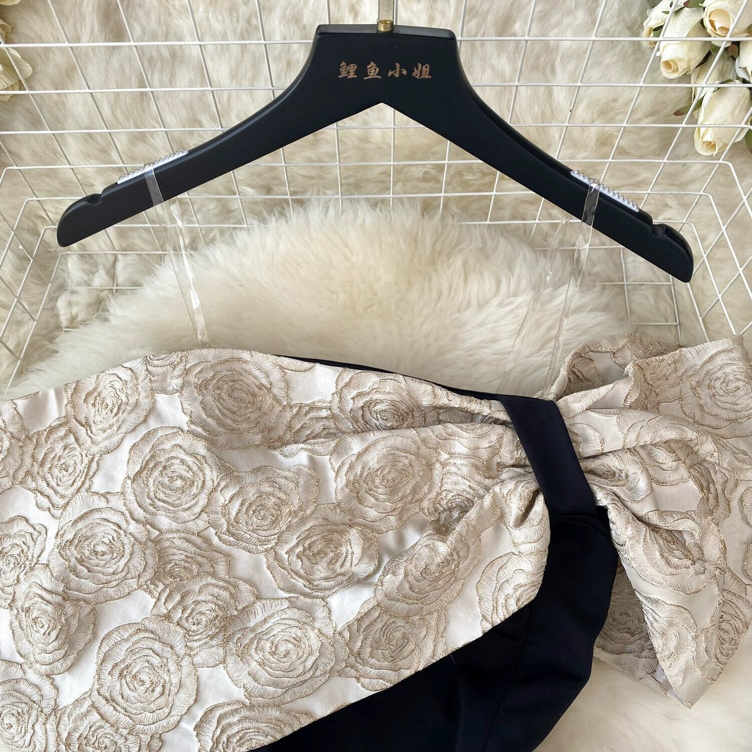 ライトラグジュアリーレトロハイエンドオフショルダードレス女性の夏のウエスト痩身ワンショルダーコントラストドレストレンディな サマー 夏物 lyxaj78377620370