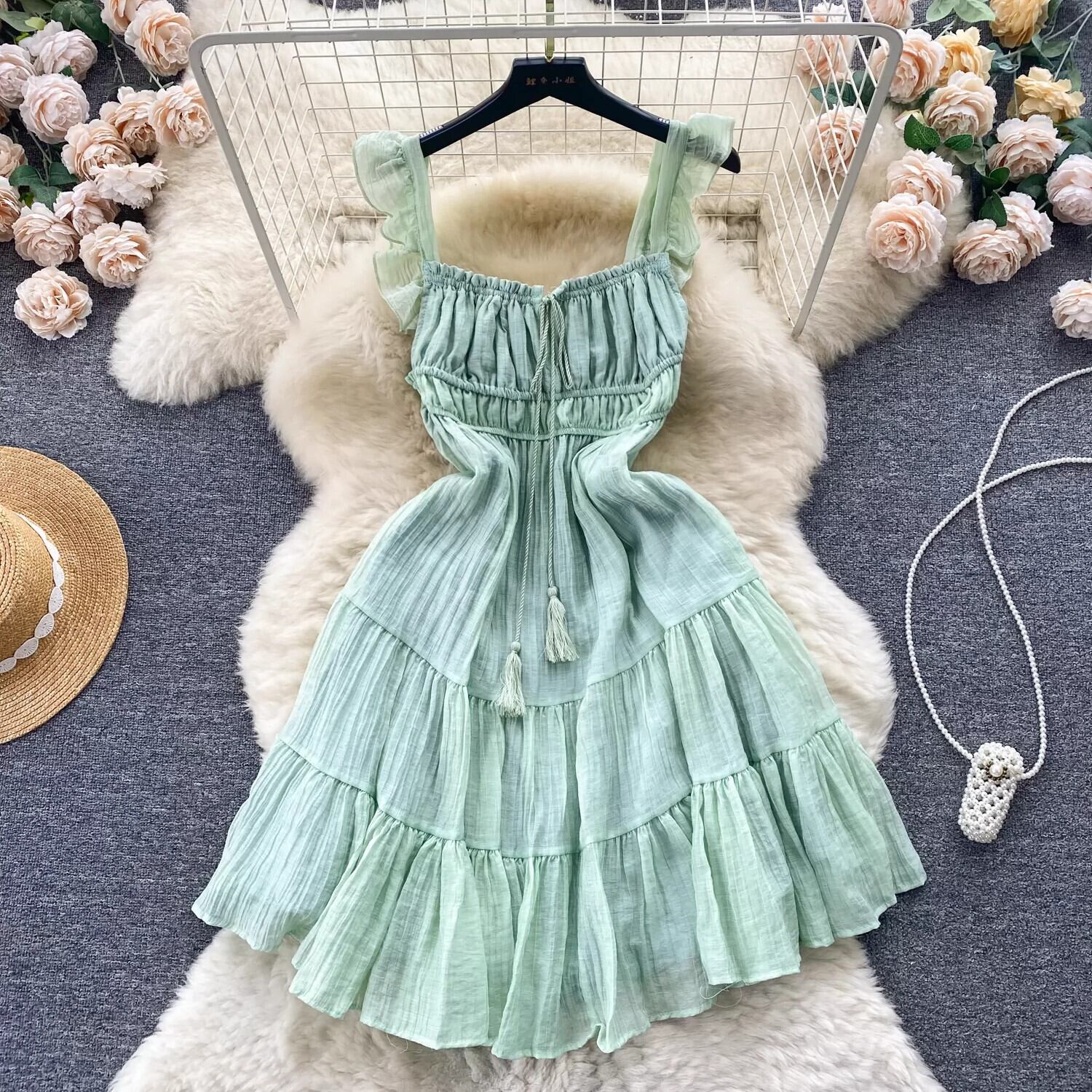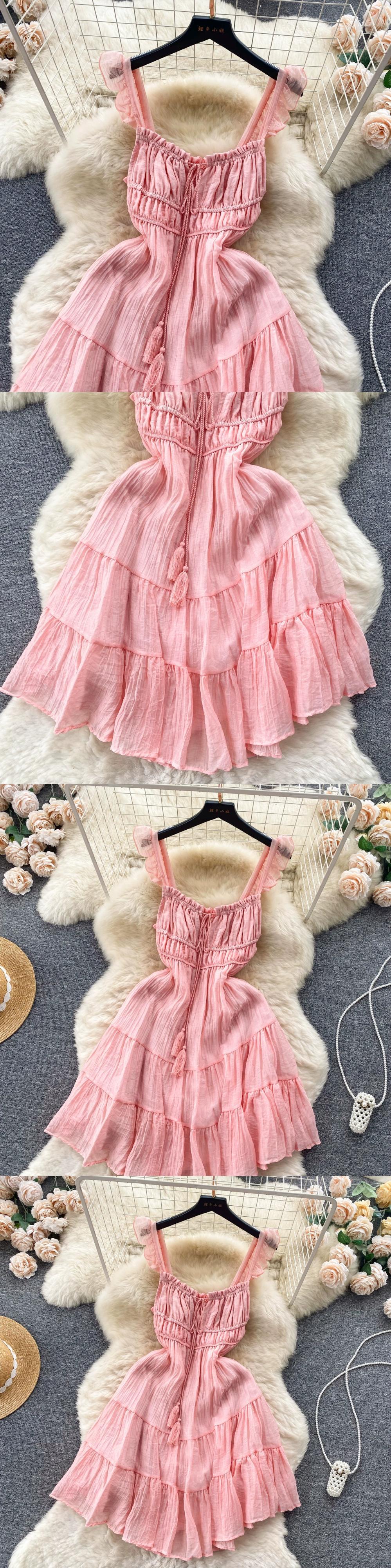 甘くて優しいスタイルのサスペンダードレススタイルシックなフレンチウエストプリンセスドレス痩身気質ホリデーフェアリードレス 大人ガーリー スウィート キュート カジュアル lyxaj84728605411