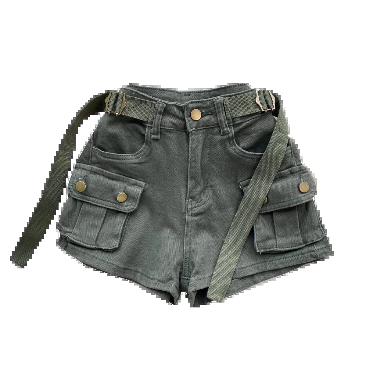 シックな香港スタイルのレトロなワークウェア大きなポケットスリムショートデザインジーンズスタイルショーツレディースパンツトレンディ ブルマー lyxaj48331142477