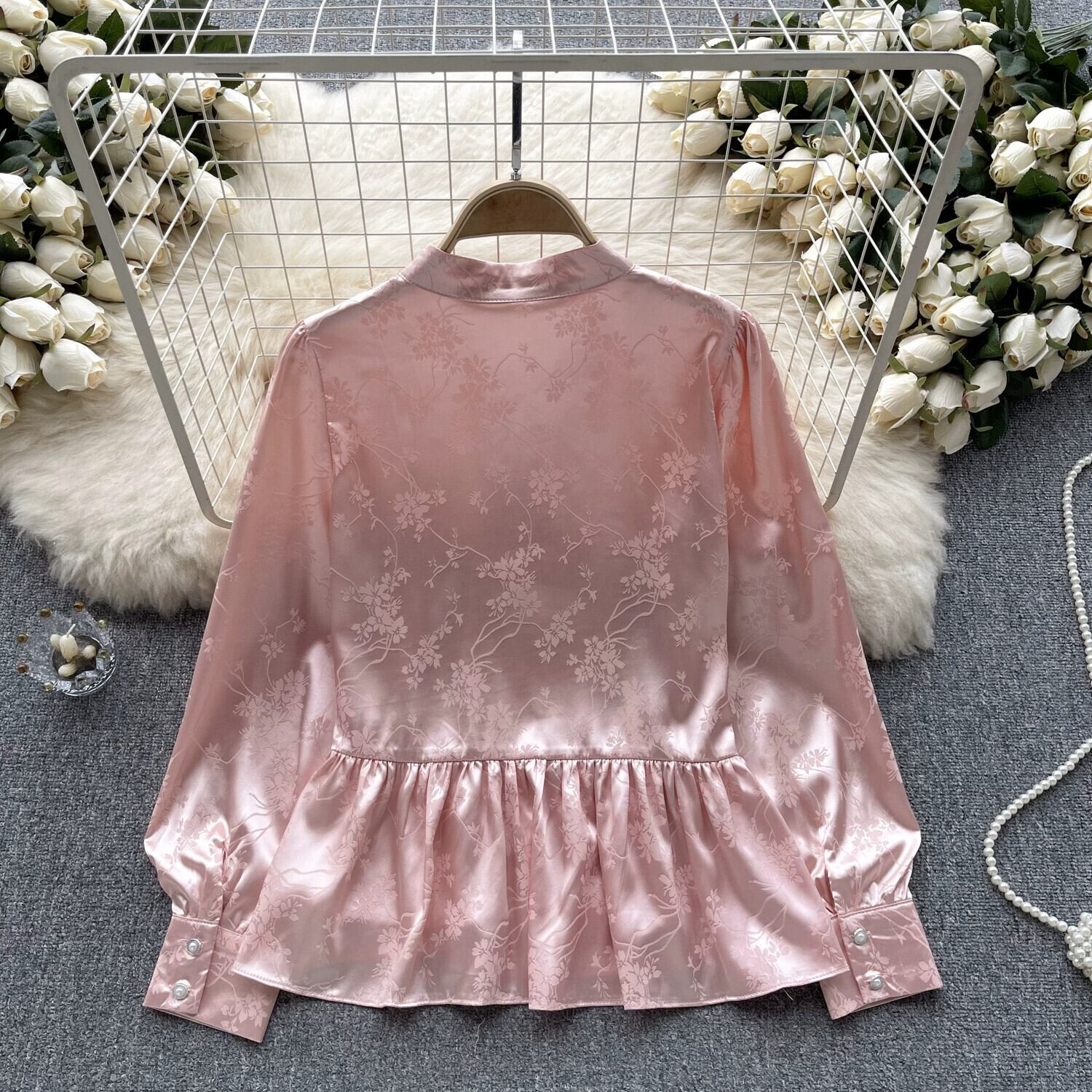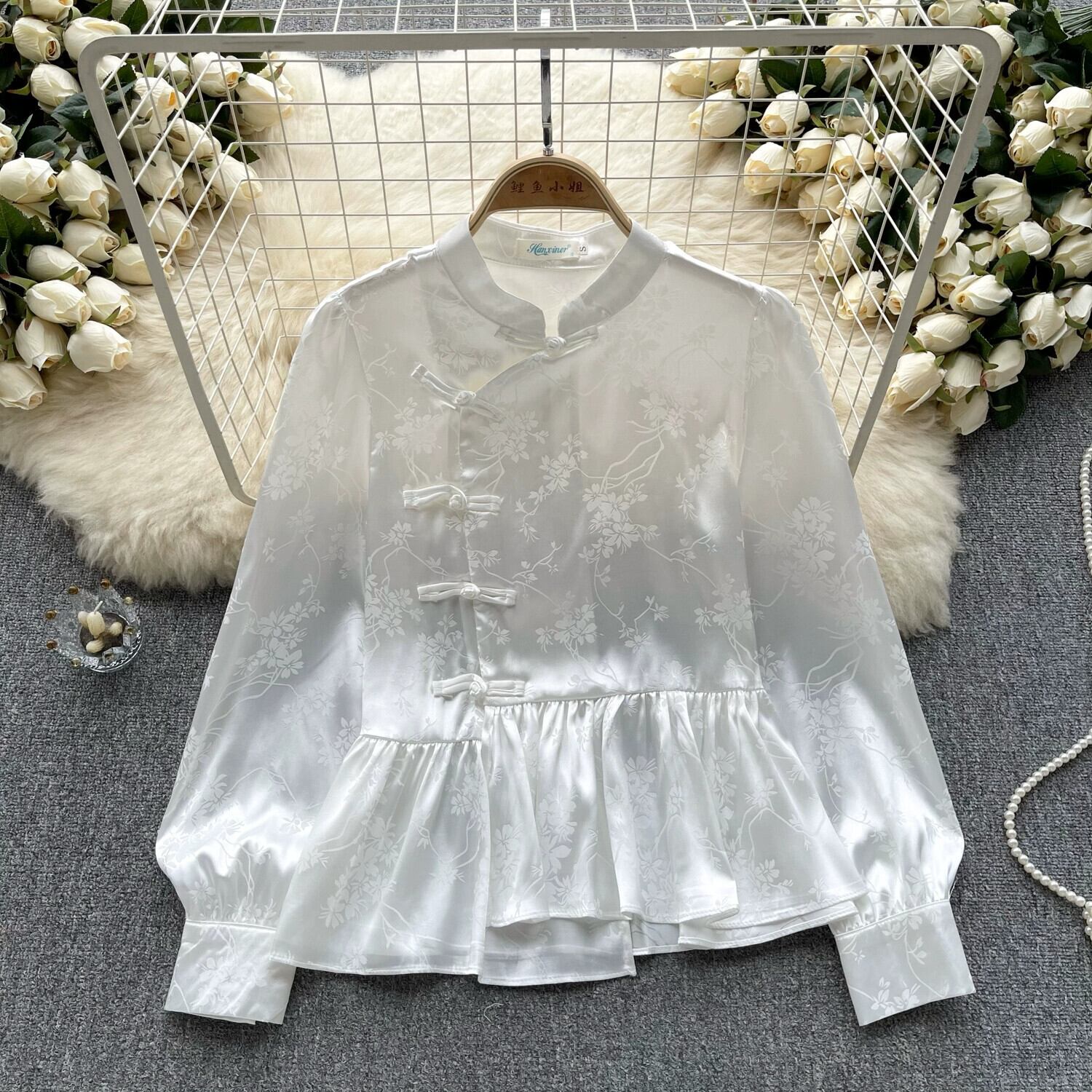 中国風の婦人服 2023 秋の新スタイルフリル年齢軽減多用途パフスリーブシャツ長袖トップ ロング オータム 秋物 lyxaj64953770193