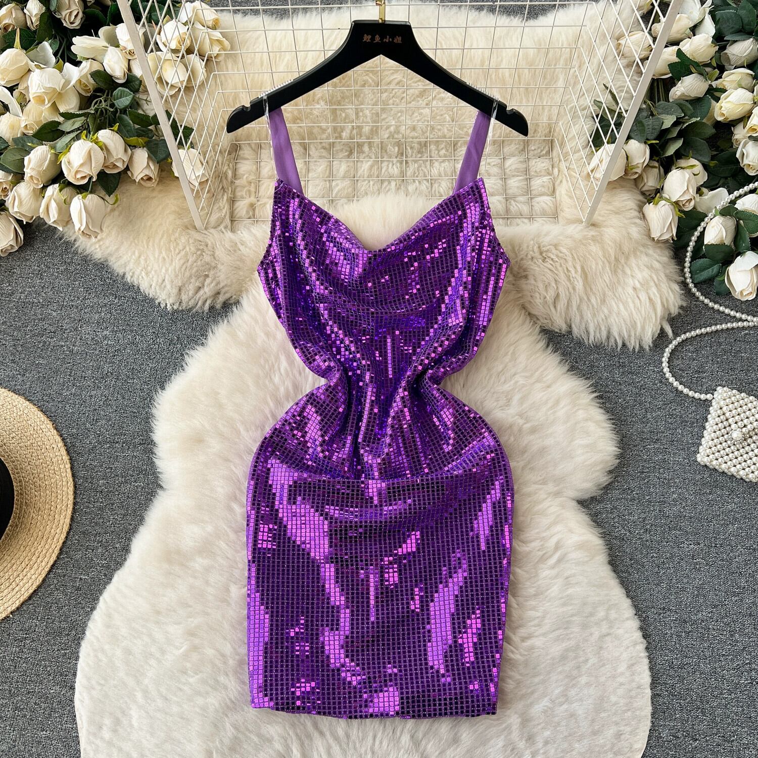 有名人のサスペンダースカートハイエンド婦人服新しいライト高級短い気質 V ネックスリムスパークリングスパンコールドレス女性の夏 ショート サマー 夏物 Vネック lyxaj54802583282