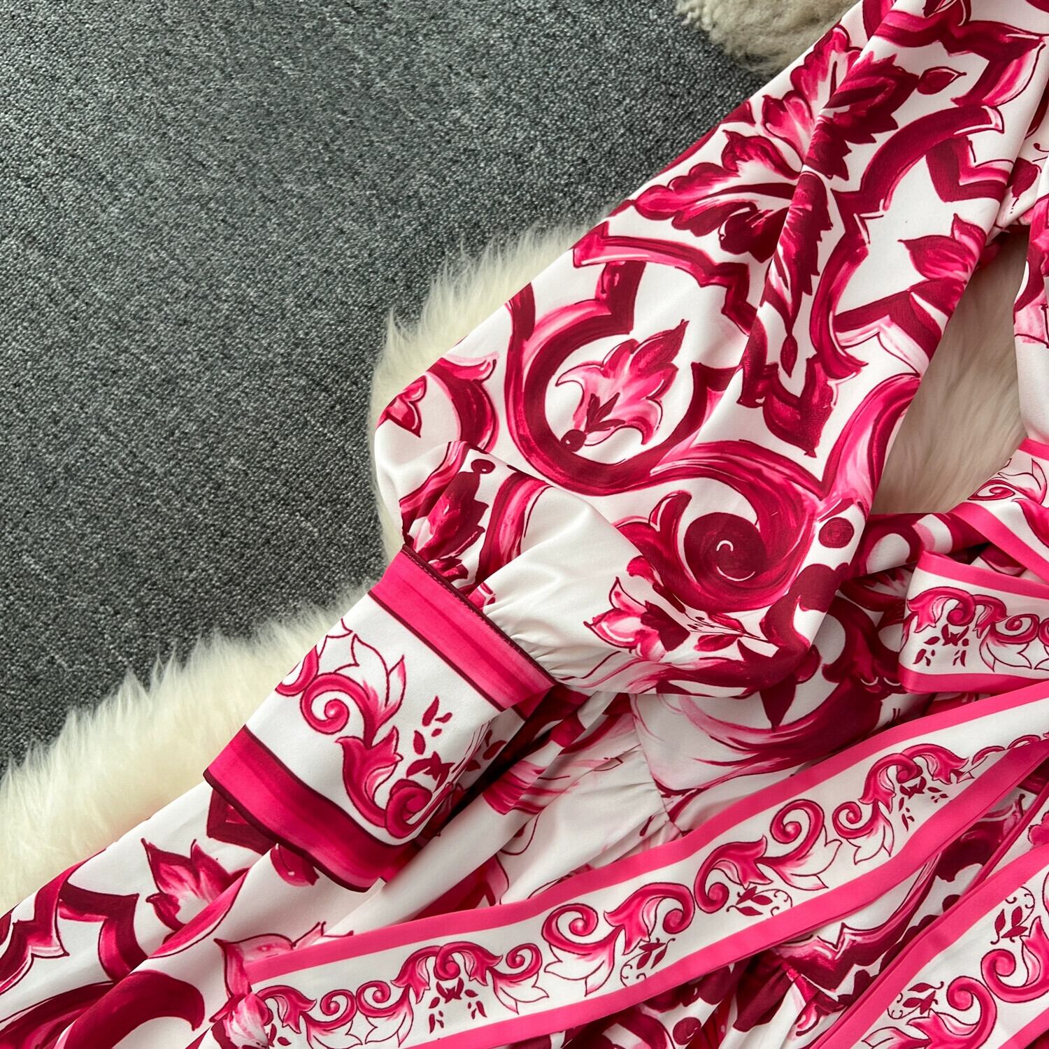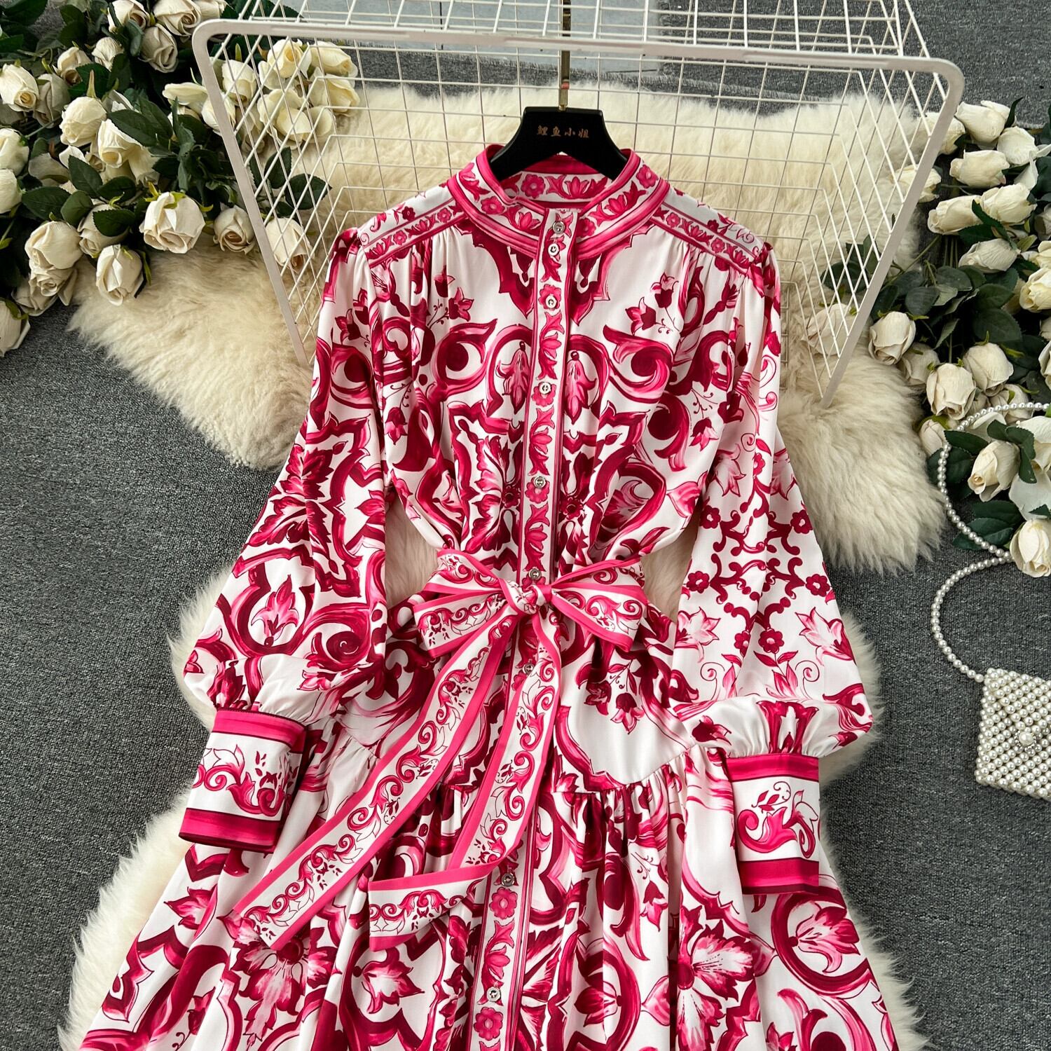 宮殿スタイルのドレスの女性 2024 新しい春スタイルの気質スタンドカラーボタン付きスリムロングニッチプリントドレススカート レース スプリング 春物 lyxaj48734096374