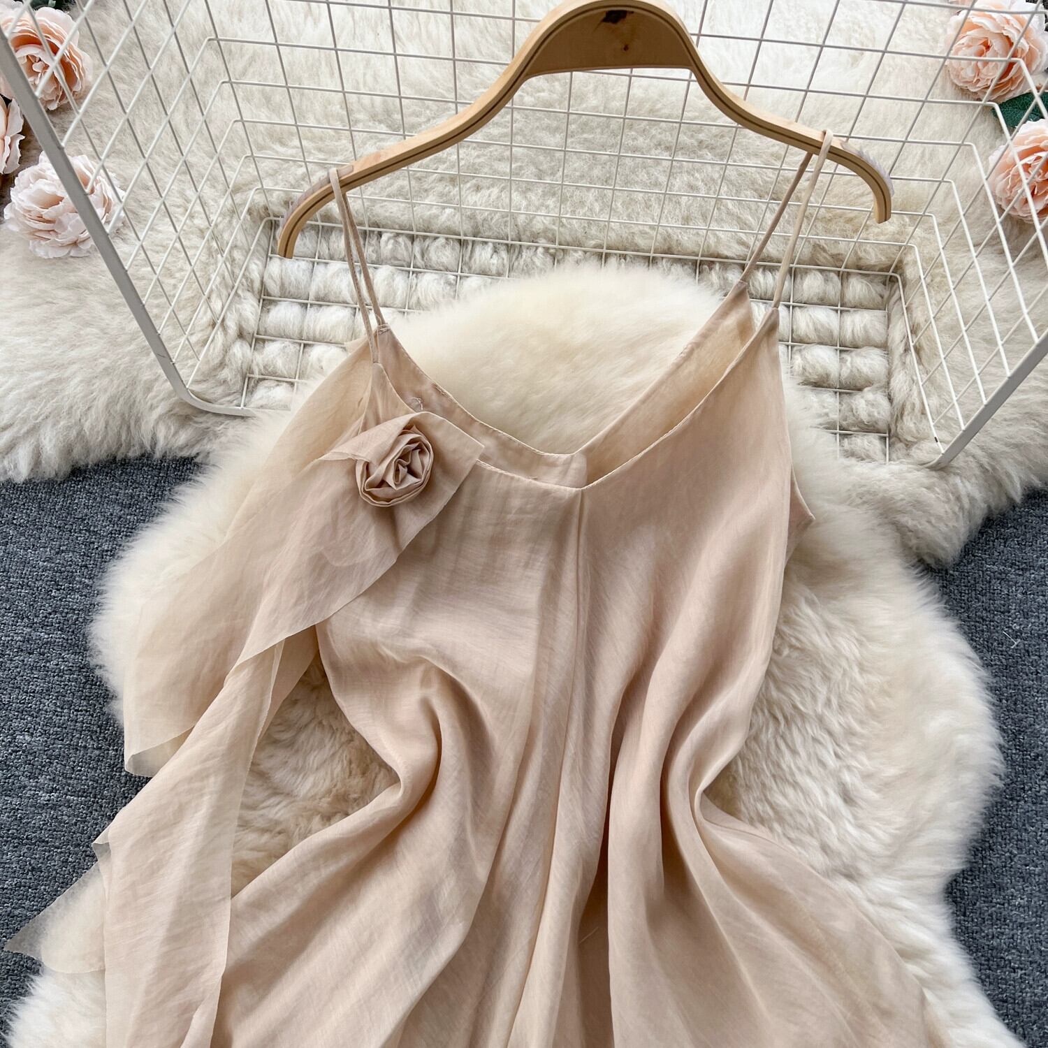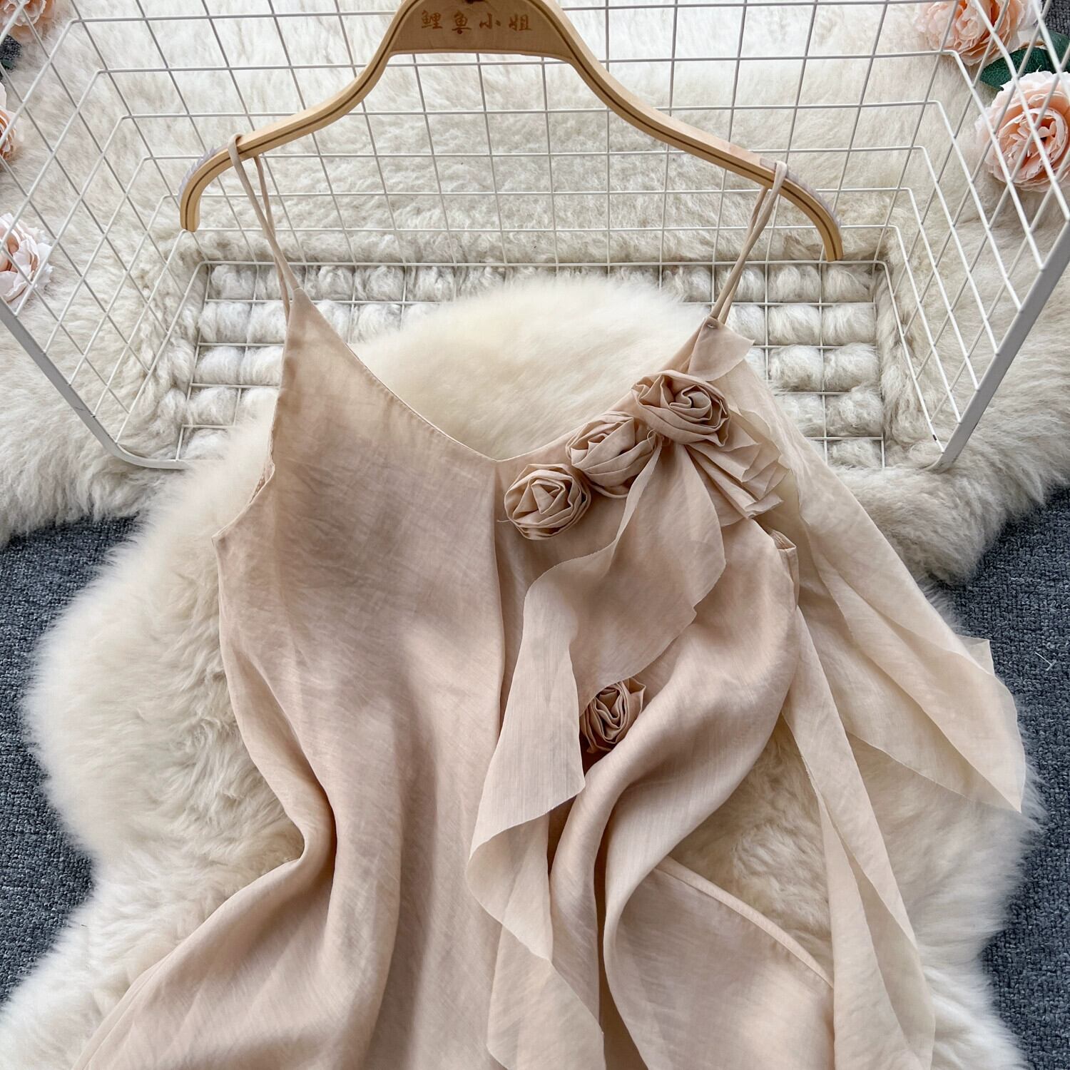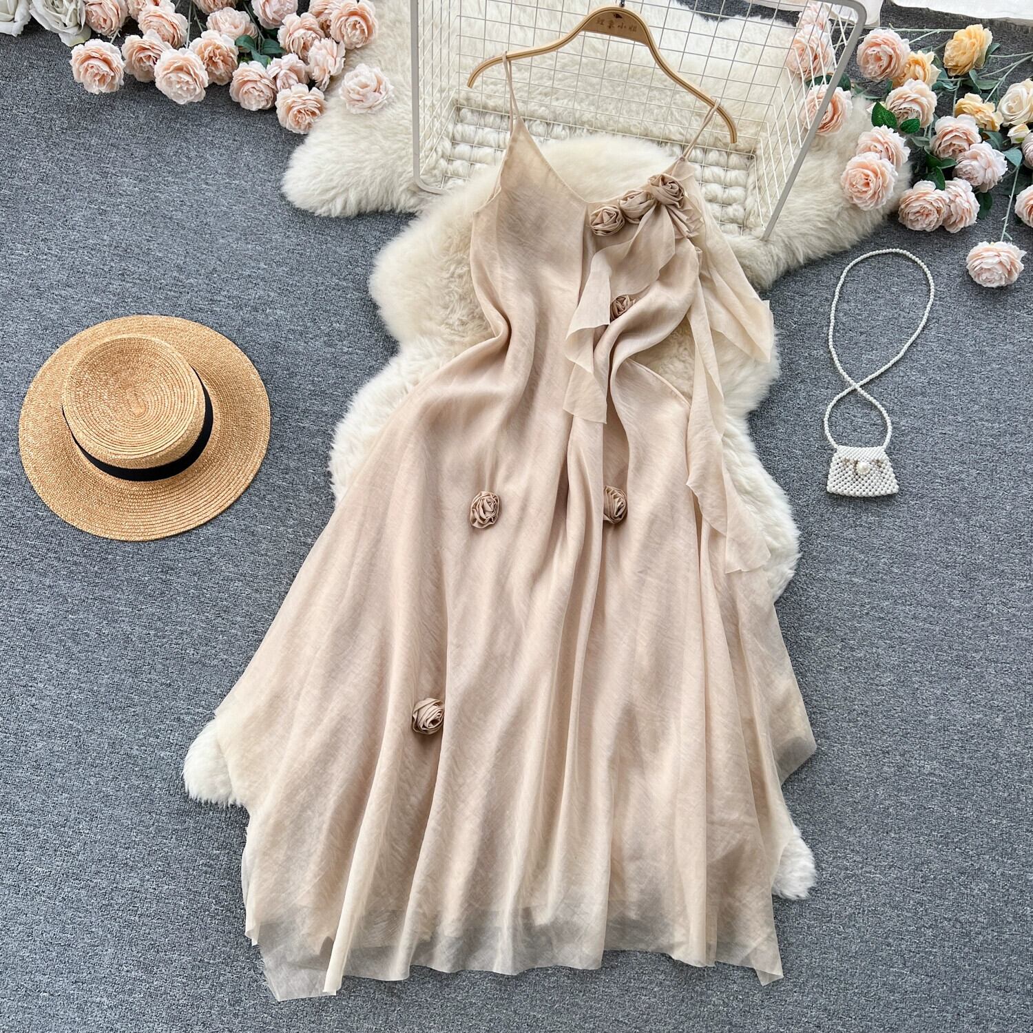 フレンチスイートノースリーブサスペンダードレス女性2023新しいスリムな気質とハイエンドの立体花柄シフォンロングスカート 大人ガーリー スウィート キュート カジュアル lyxaj654371941