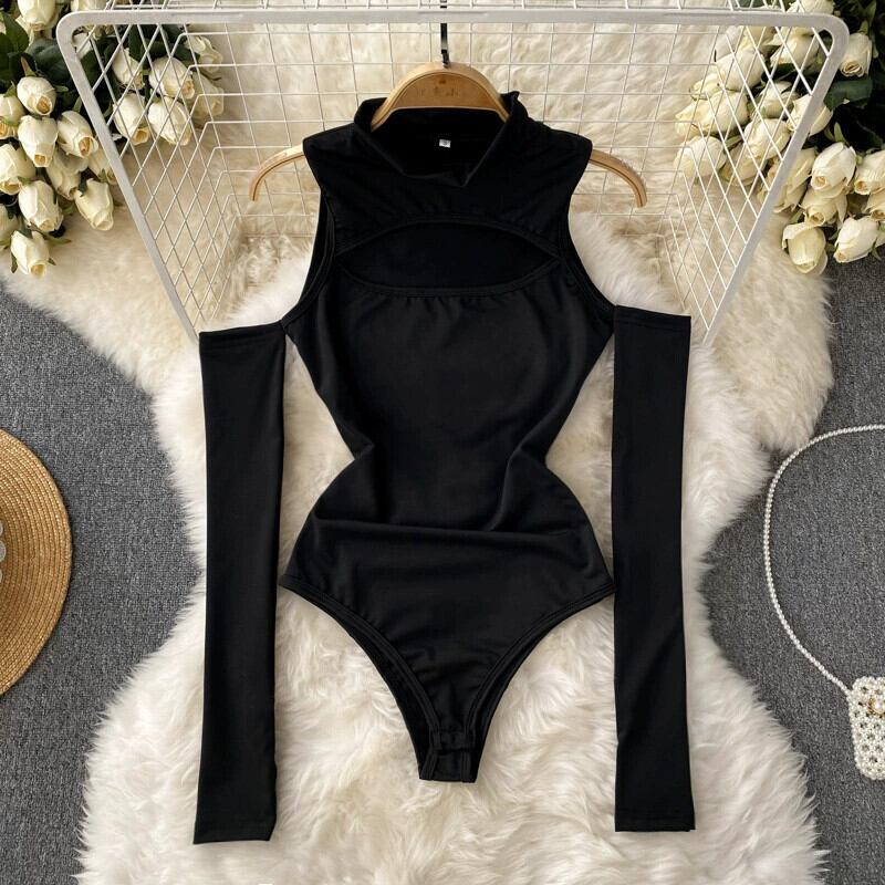 ニッチセクシーなハイカラー中空空気品質セレブオフショルダージャンプスーツ袖付きハイカットジャンプスーツ jie87435849922