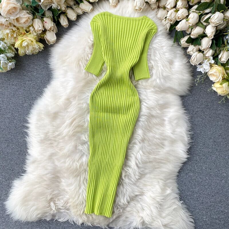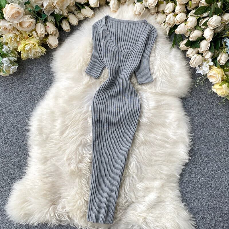 ドレスの女性の夏 2020 新しいヨーロッパとアメリカのインセクシーな V ネック無地ニットピットストリップタイトヒップスカート サマー 夏物 Vネック ソリッドカラー ヨーロピアン jie85386422296